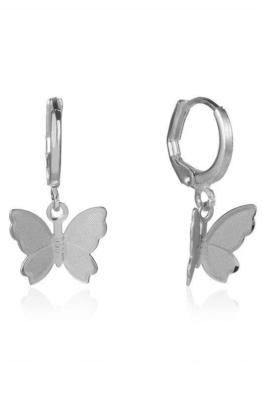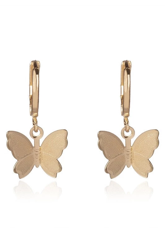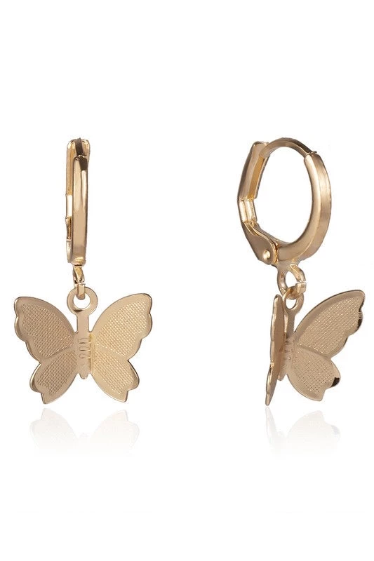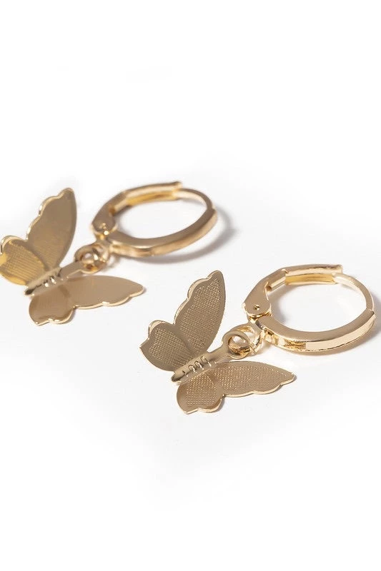Accessorize for spring & summer with these dainty butterfly earrings. This huggie style earring is such a cute style & pairs nicely with other jewelry. Available in gold & silver finish!