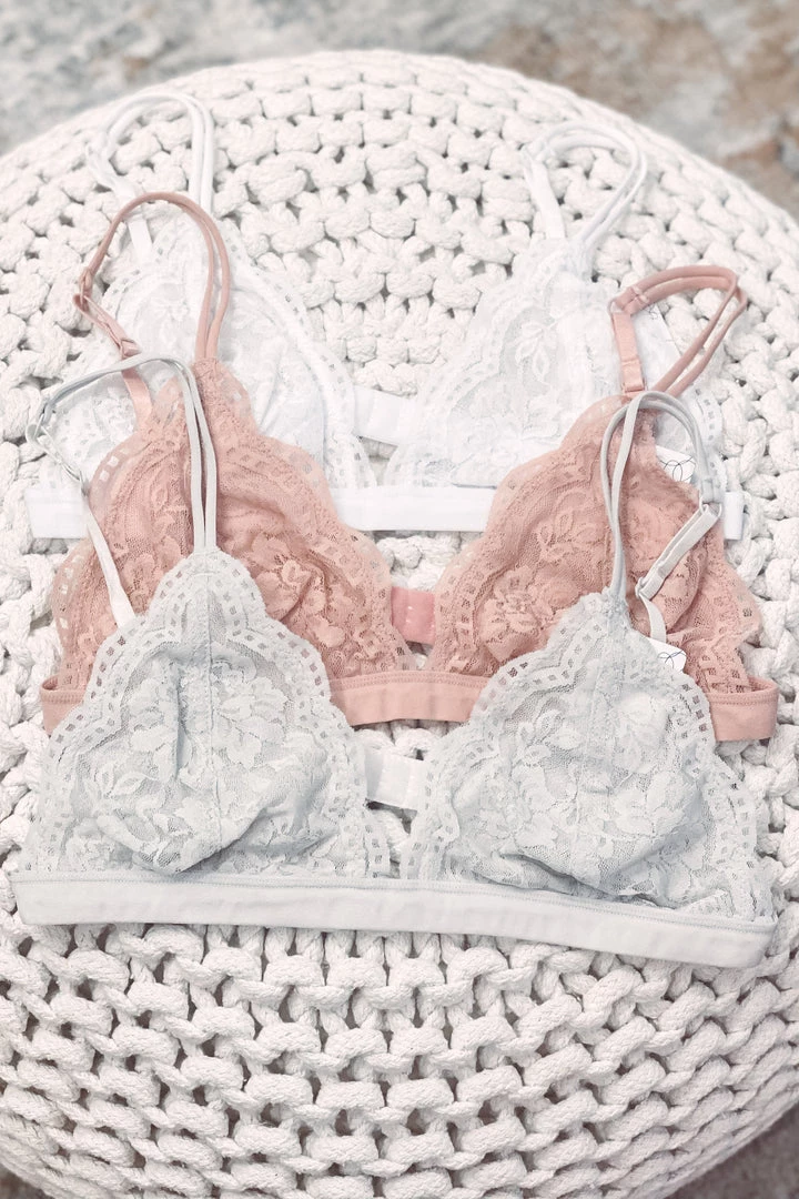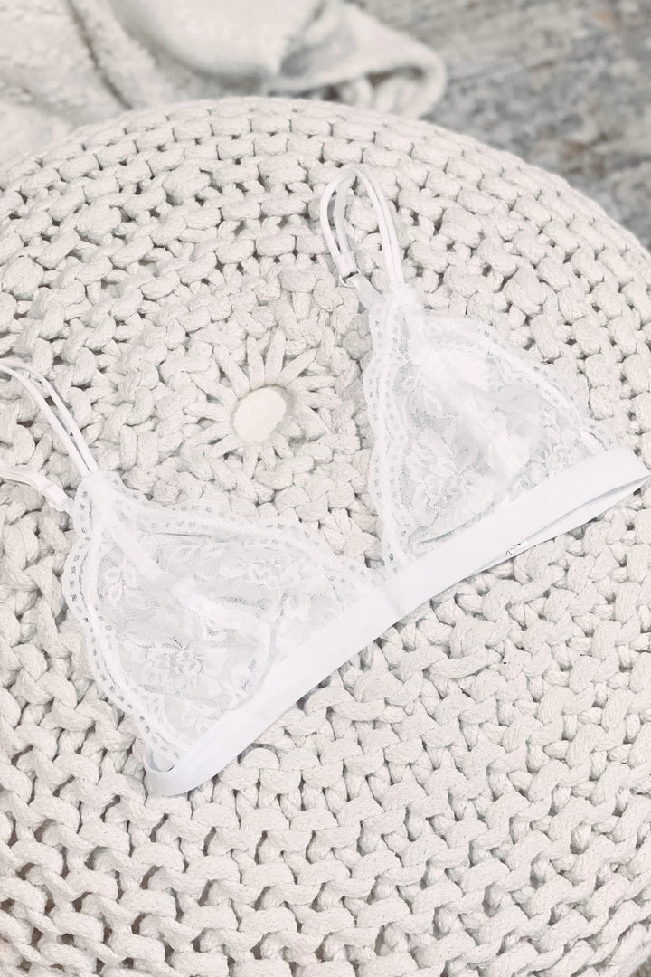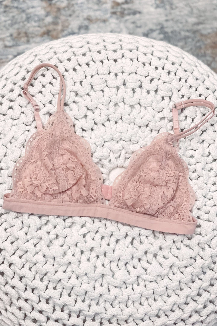 This little Bralette is perfect for throwing on under just about anything for light coverage and lace accents. Featuring a floral sheer lace in a triangle low-cut mesh lined bralette with adjustable straps and back hook closure.