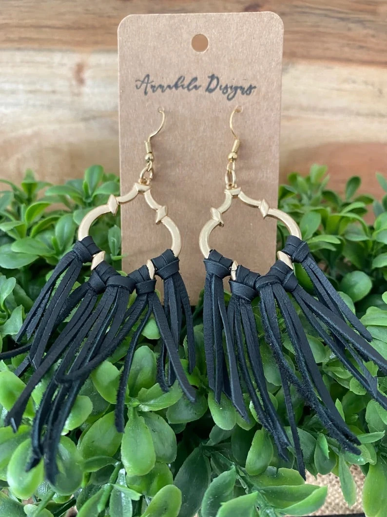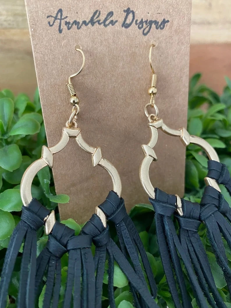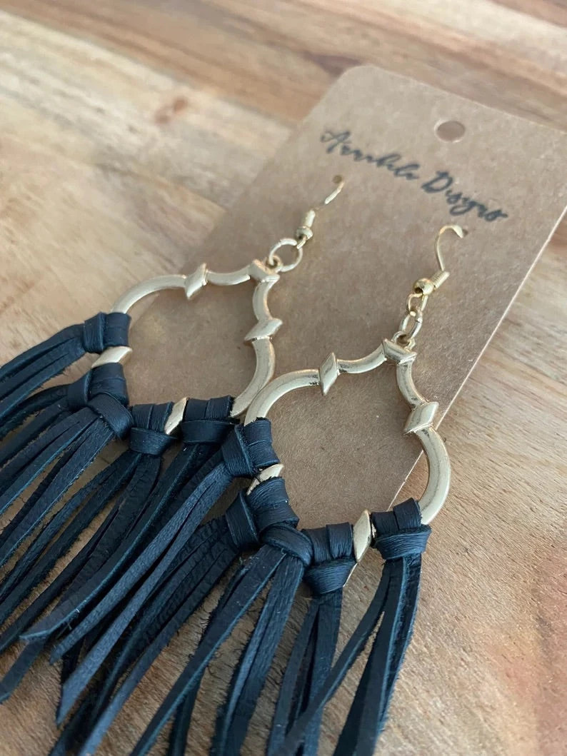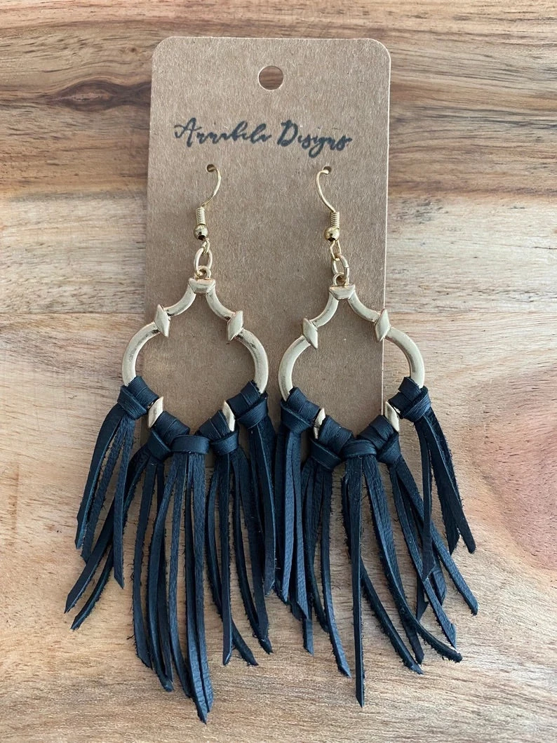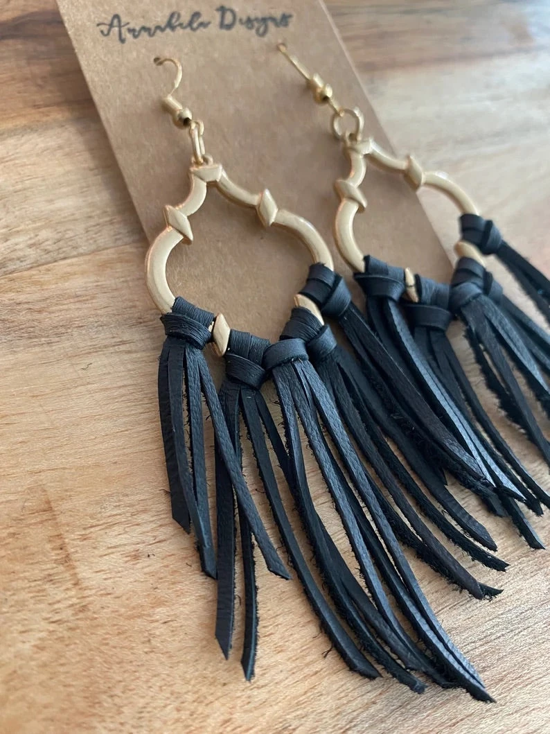 These fun earrings are locally handmade and hand-cut with genuine leather on a stylish gold metal. Leather that is buttery soft and lightweight. Perfect for any outfit!