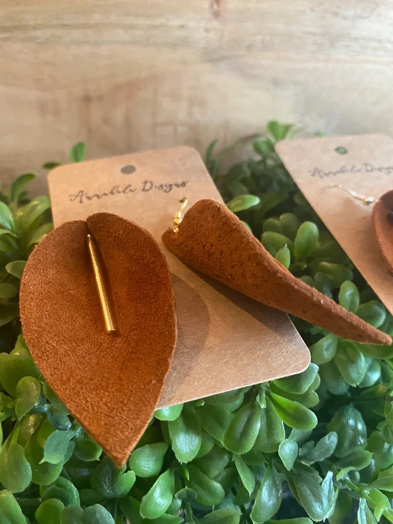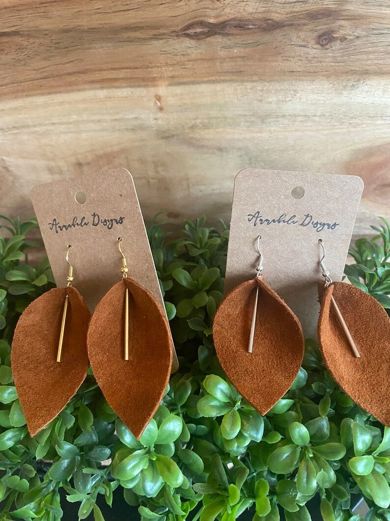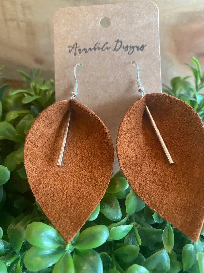 BROWN SUEDE with an Accent Bar-Genuine Leather Leaf Earrings!