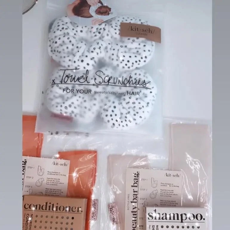 Our Kitsch Towel Scrunchies are luxuriously soft & absorbent scrunchies that keep your hair back after the shower while drying your hair! These scrunchies accommodate all hair lengths while providing comfort during your post-shower routines. Benefits: • Highly absorbent microfiber material • Helps reduce heat drying time • Oversized design absorbs even more moisture • Soft microfiber material is gentle on all hair types • Helps tame frizz & reduce hair breakage • Perfect for wet hair on the go – gym, hot yoga, beach & swimming pool • 2 pieces of towel scrunchies included • Packaging functions as a reusable waterproof travel pouch