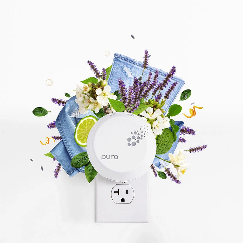 - The classic comfort fragrance, Blue Jean, is now available for use in your Pura diffuser! Pura lets you control your device from anywhere, and you can set custom schedules and choose your fragrance level to keep your house smelling fresh. So, let our famous Blue Jean scent welcome you and your guests – it’s the perfect complement to any space!