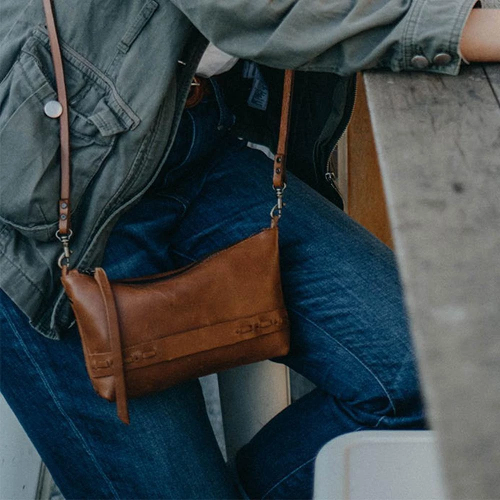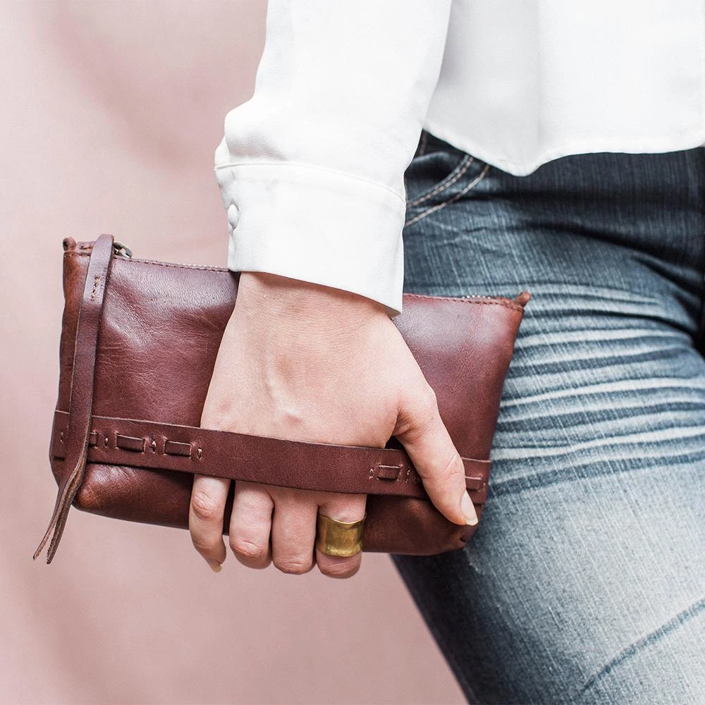 Design Goal for the Borsa: create a small cross body that could also convert to a clutch, a wristlet, or even a cosmetic case using premium leathers and bring it to market for under $100. Customers are telling us this very special cross body hits the mark on all counts. The leather is supple to the touch yet structured enough to stand on it’s own. We didn’t line the bag because the leather is as warm and inviting on the inside as it is on the outside. The clutch strap on the bottom front of the bag is detailed with the same interwoven leather design we use on our backpack, messenger, and phone cases. The 3/8″ shoulder strap includes a small section with clip that allows the bag to be reconfigured as a wristlet. Remove the strap entirely and slide your hand through the strap on the bottom front of the bag and you’ve got a clutch that fits like a leather glove.