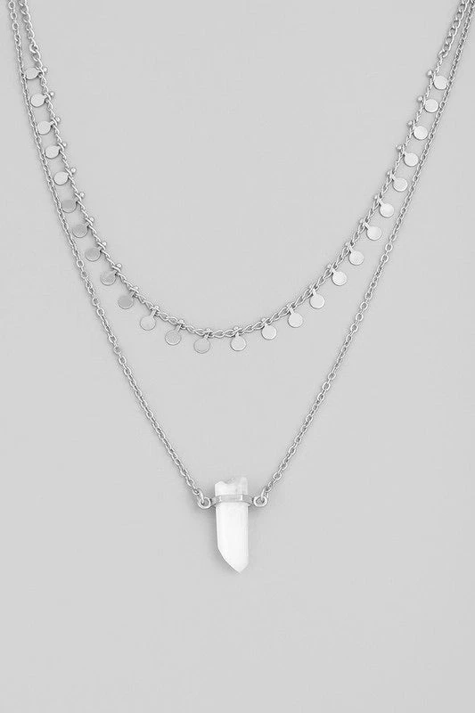 Accessorize your outfit with this gorgeous crystal necklace. Featured in a layered style including a dainty dot chain paired with a crystal pendant. This necklace is simple yet gorgeous – Available in a silver finish.