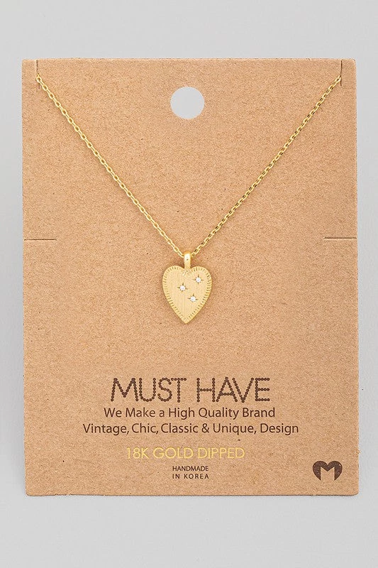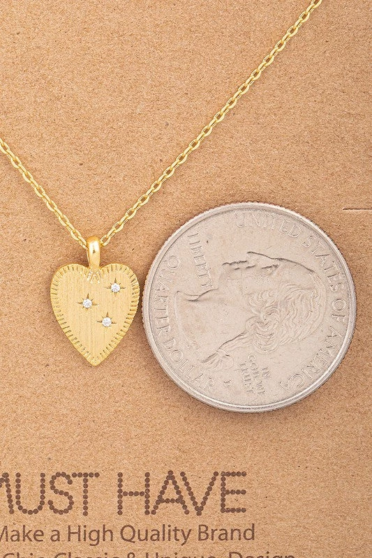A dainty necklace featuring a heart pendant with 3 sparkling stars! Available in gold, silver, and rose gold. Approximate chain length 16”