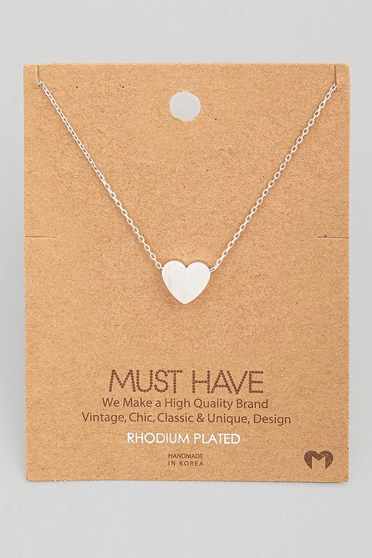 Simple yet so sweet! The perfect gift for Valentine’s Day! This necklace features a mini heart pendant in a brushed finish available in gold, rose gold, and silver.