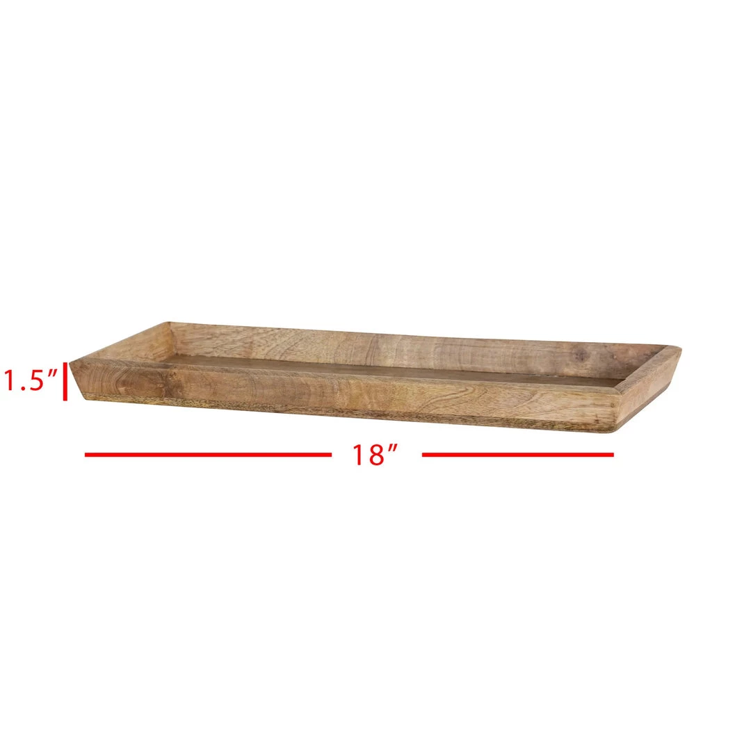 -Dimensions: 18 x 7 x 1.5″H -Materials: Wood -Transitional, versatile design and neutral color allow this tray to suit all decor styles.