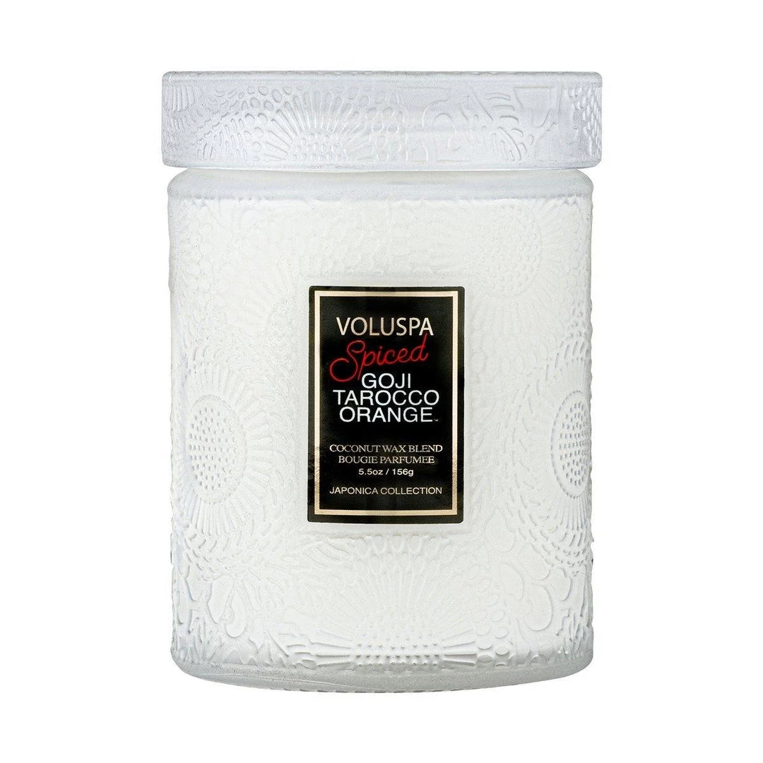 A new twist on an old favorite. Welcome home for the holidays with our best-selling Goji Tarocco Orange fragrance. Spruced up with homey spices of Anise, Clove, and Cinnamon and packed into a frosted winter white glass.