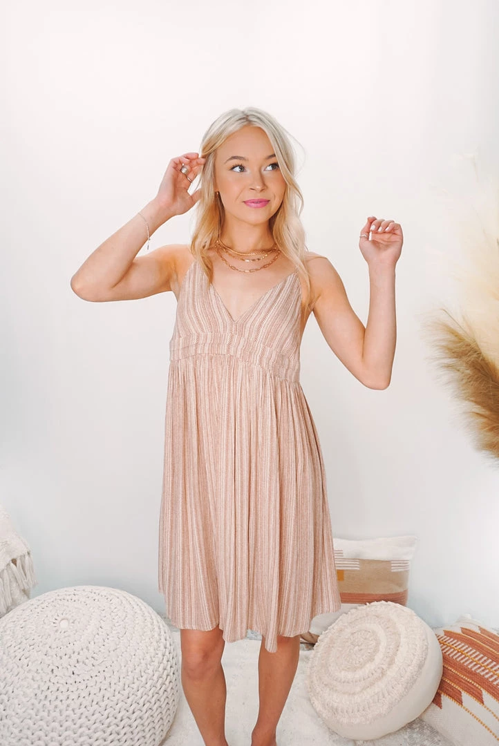 Simple yet so sweet! The Taliana Dress features a swing style silhouette, v neckline, adjustable cami straps, racer back detailing, subtle tribal print, and a relaxed fit. Pair with sandals or boots for an effortless summer style!