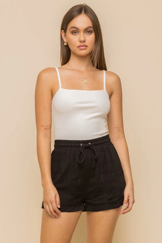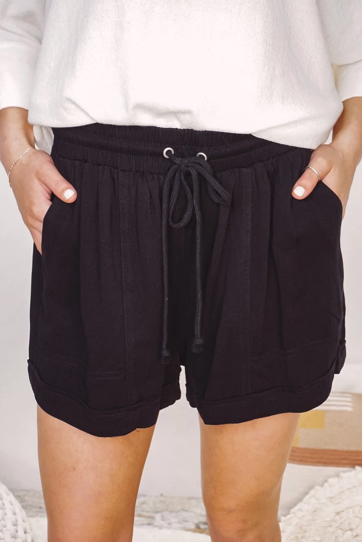 Comfy & cute! The Scout Shorts feature a soft rayon twill fabric, side pockets, drawstring detailing, an elastic waist, and a relaxed fit. Pair with your favorite tee for a comfy yet cute casual style!