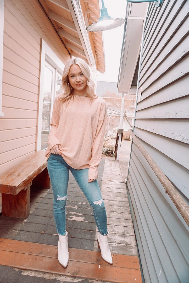 Simple & sweet for spring! The Jayde Pullover features a wide rib design, long sleeves, rounded wide neckline, and a relaxed fit. Pair with your favorite bottoms for a pop of color & comfortable wear!