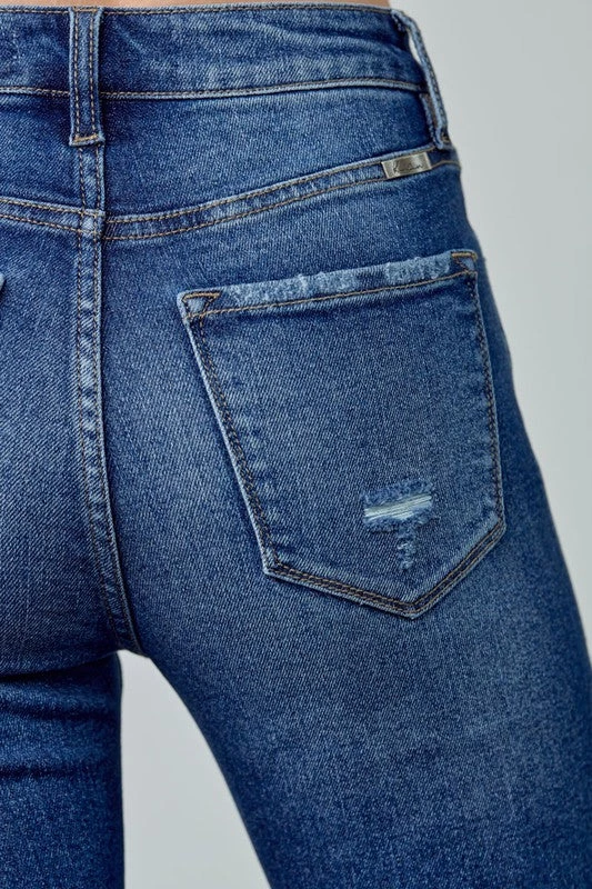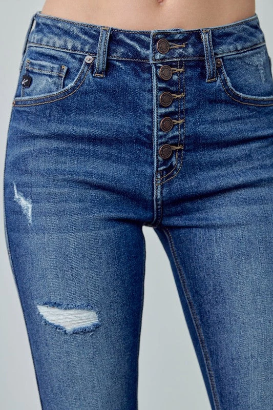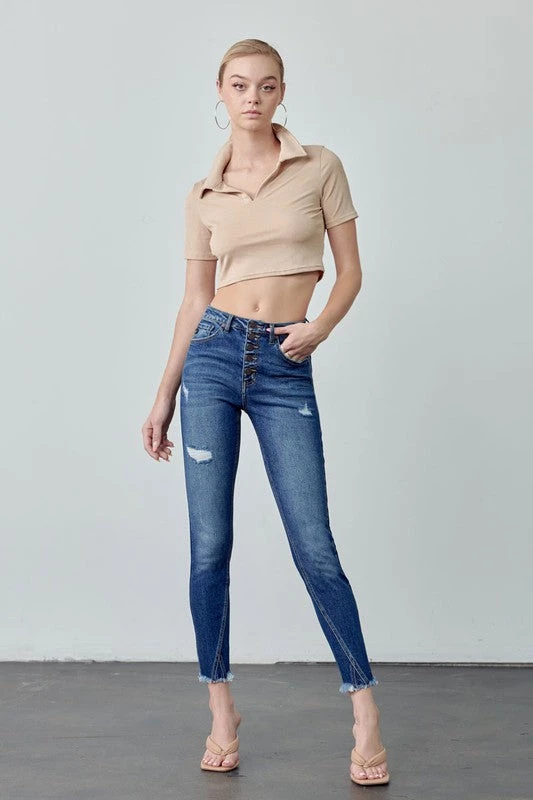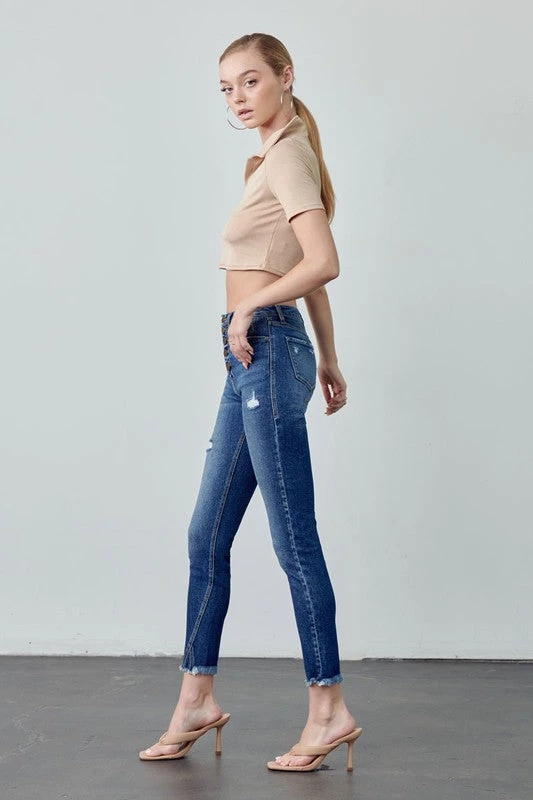 The Baron High Rise Jeans come in an ankle skinny cut that features light destruction, a raw hem, and a twisted inseam that creates a unique take on a classic skinny fit. Sits above the natural waistline as it tapers down the leg creating a curve-hugging style that’s chic and comfortable. Made with soft, stretch denim that’s flexible and maintains its shape. Features a classic five-pocket design and five-button front closure.