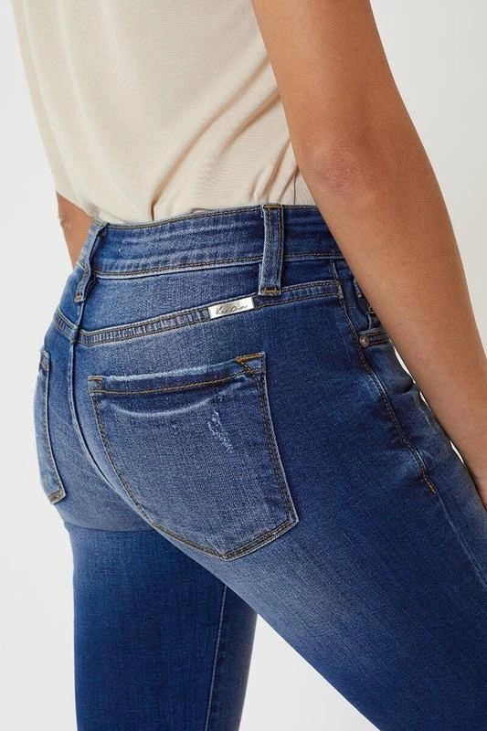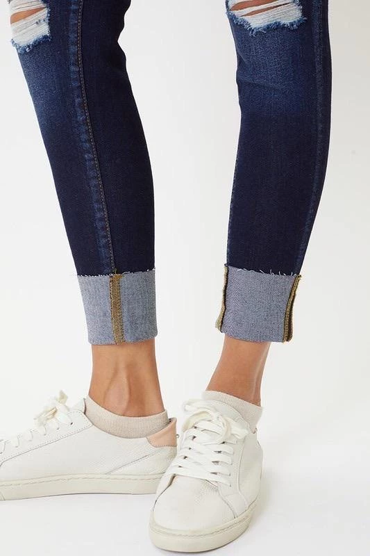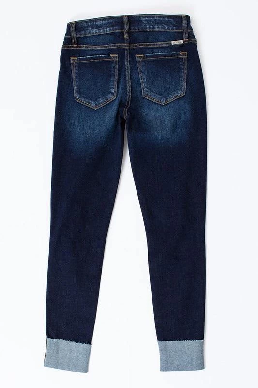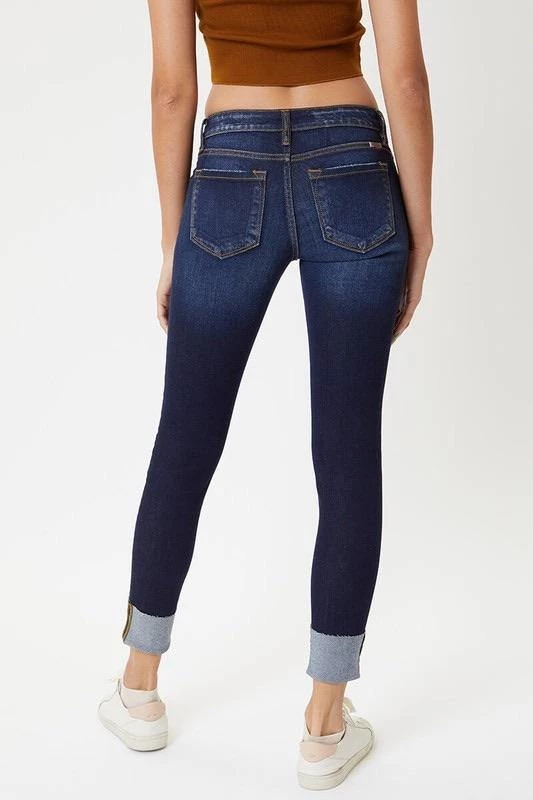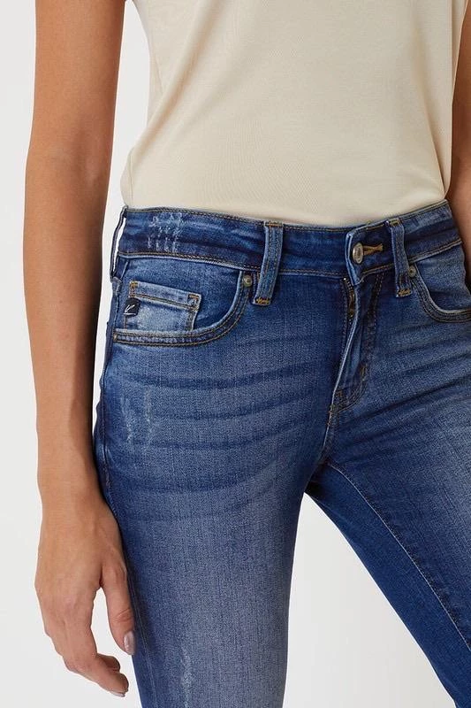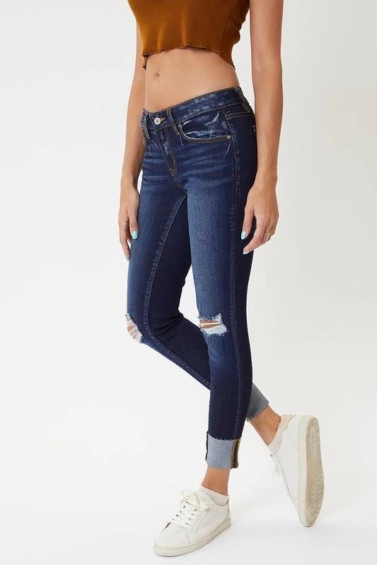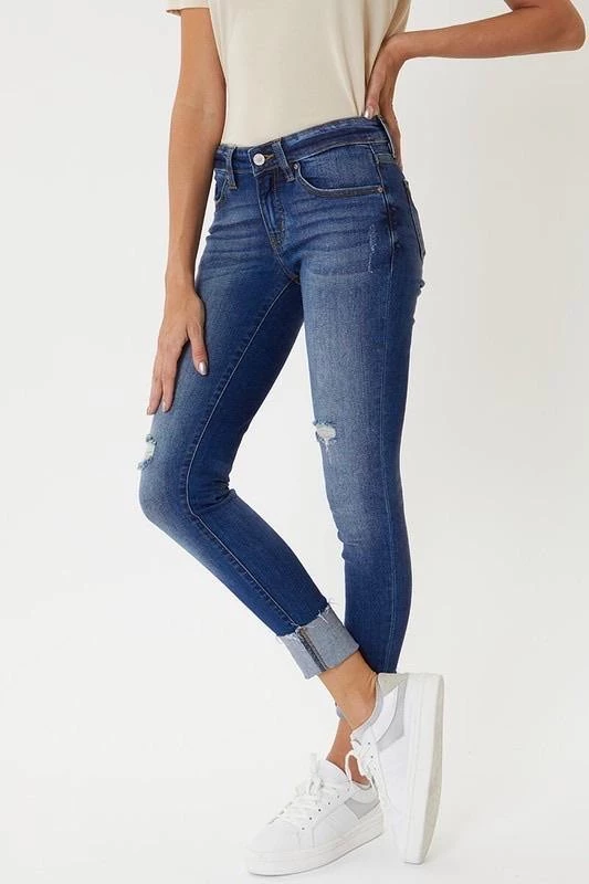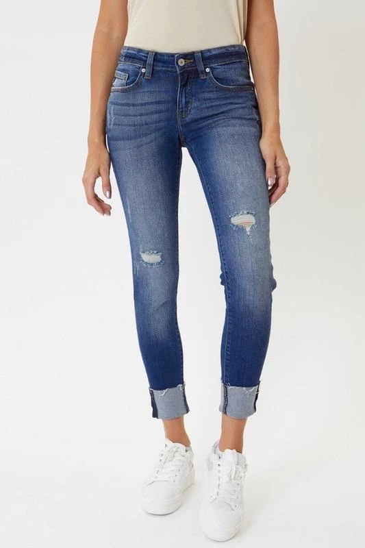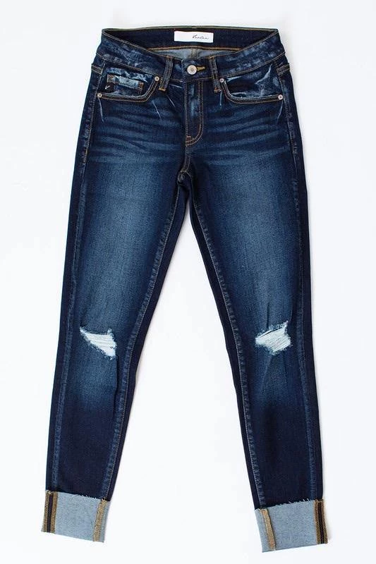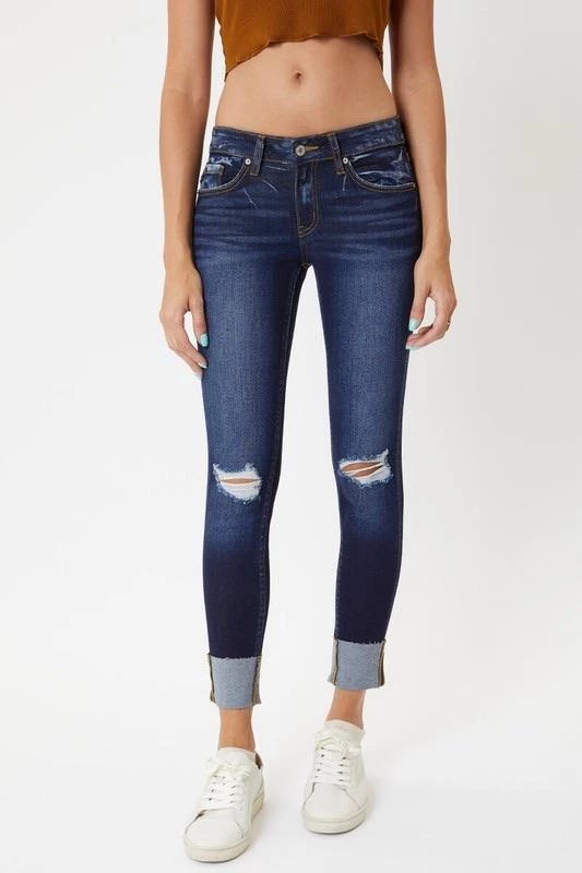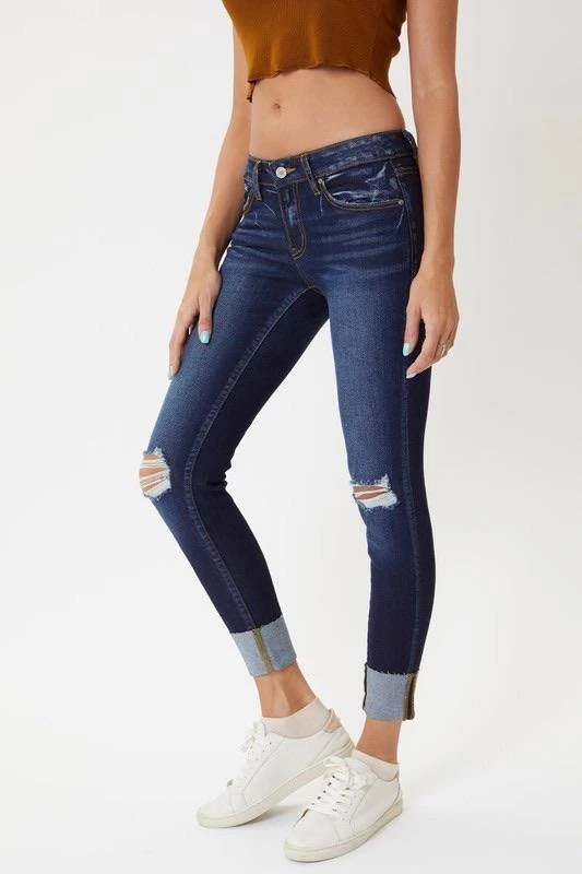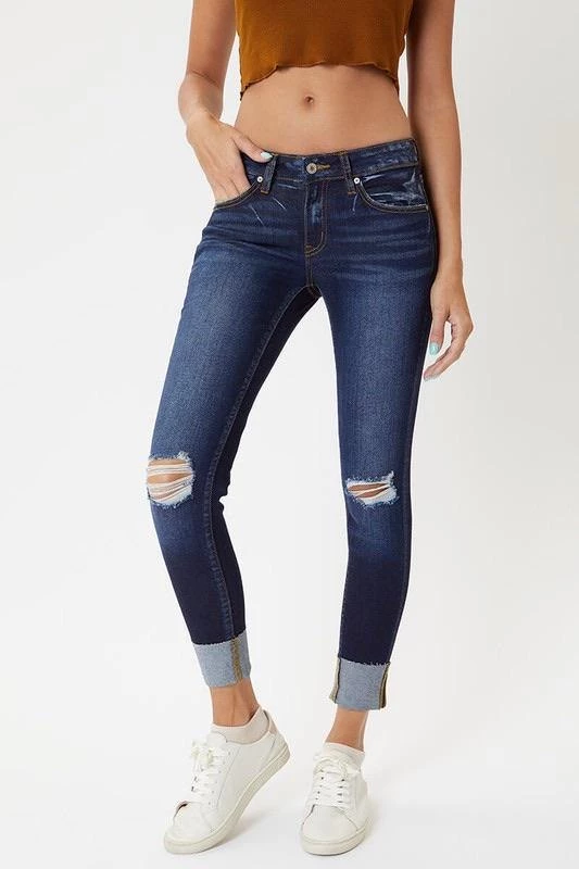 These light & dark washed, distressed denim are a great everyday wear. Cuffed hem line with slight distressing. Zipper fly in a mid rise.