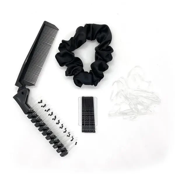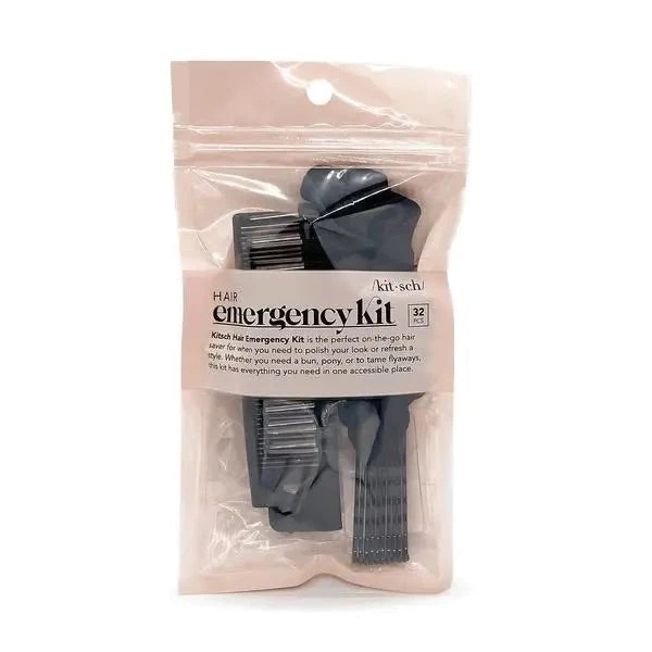Kitsch Hair Emergency Kit is the perfect on-the-go hair saver for when you need to polish your look or refresh a style. Whether you need a bun, pony, or tame flyaways, this kit has everything you need in one accessible place. Kit includes 10 bobby pins, 1 dual brush-comb, 1 scrunchie, and 20 no-snag elastics.