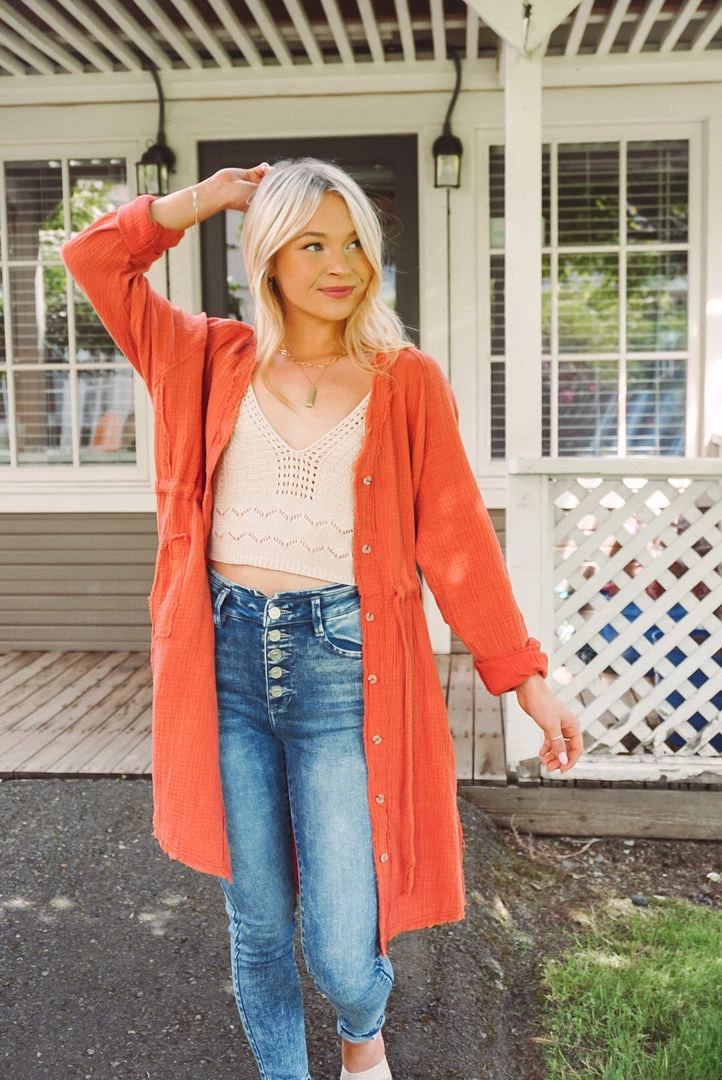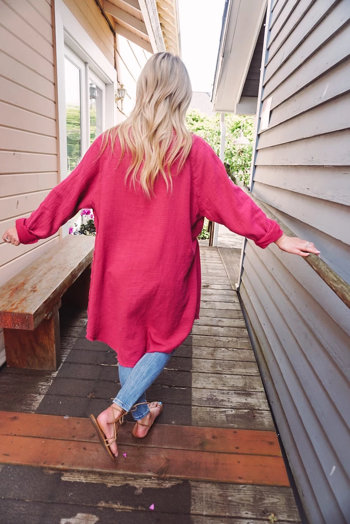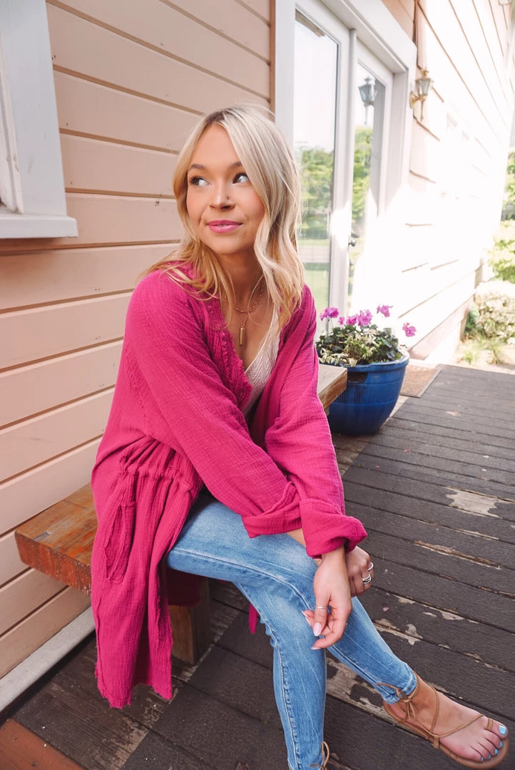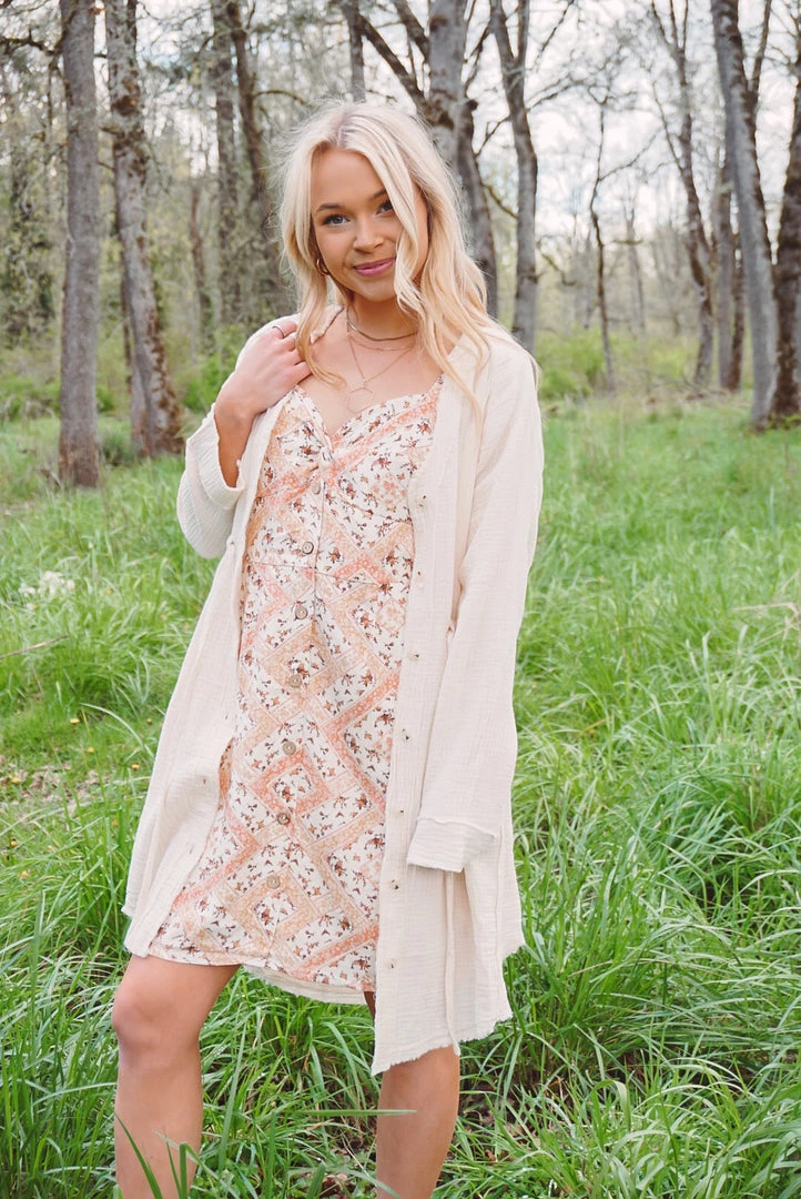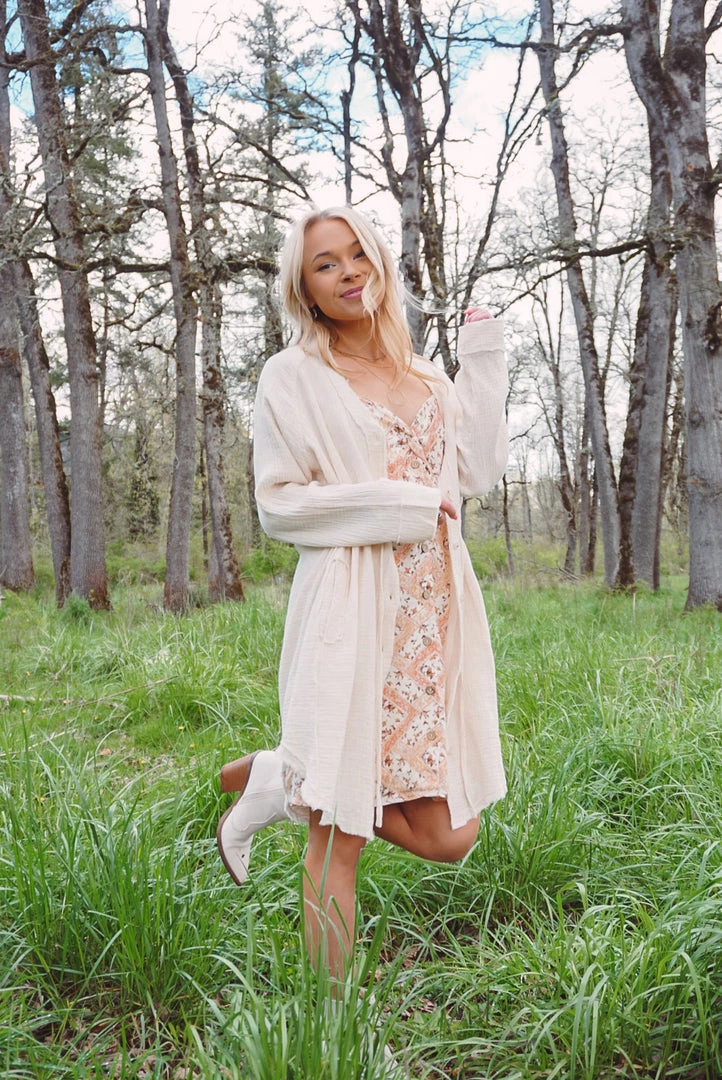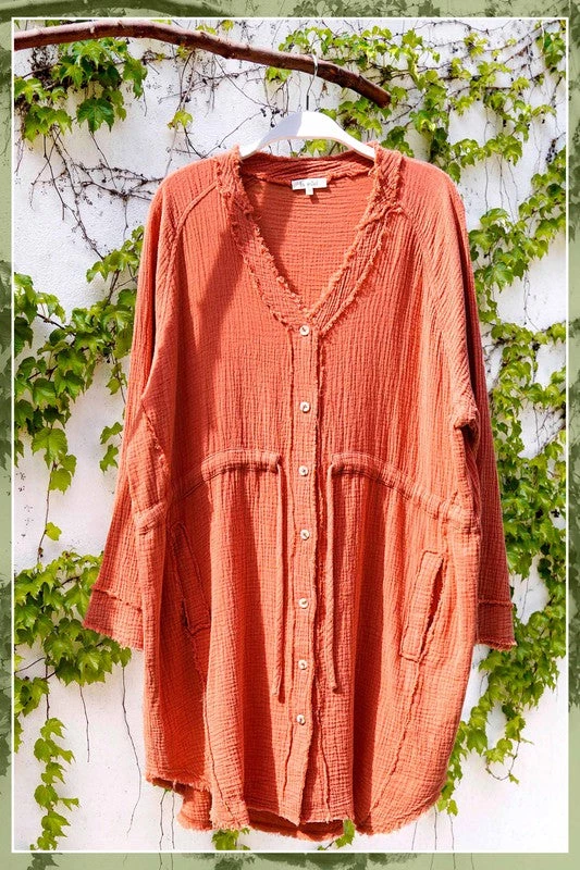 The cutest layer & versatile wear! The Beach Comber Tunic is a stylish gauze shirt that could be worn as either an outwear or a dress. Featuring cut edge detailing, open front design, a relaxed fit & side pockets.
