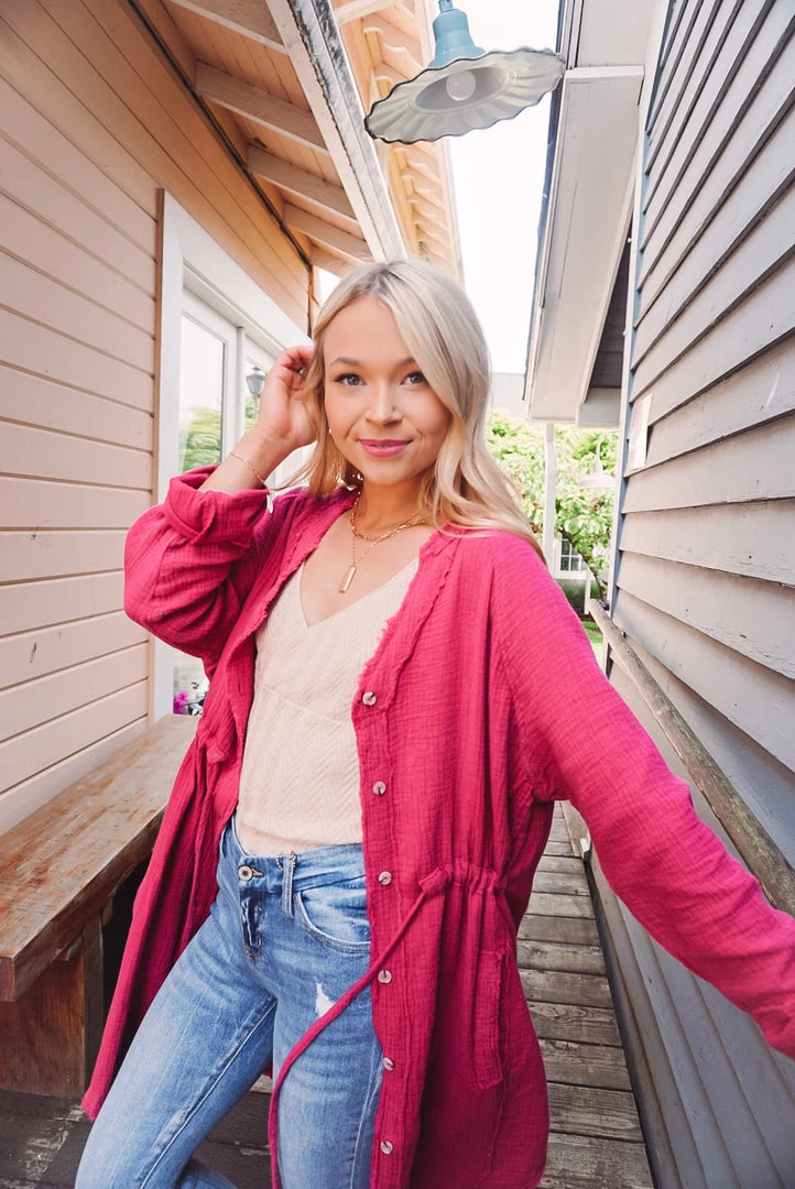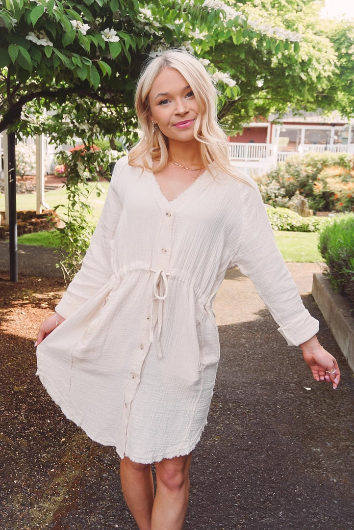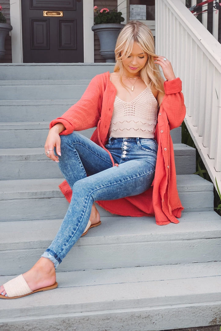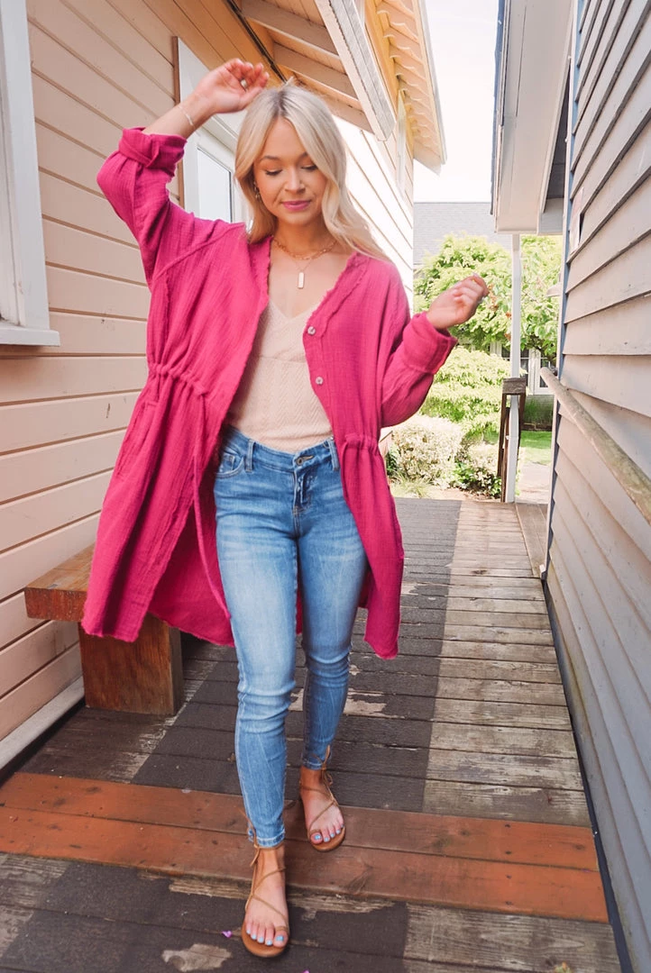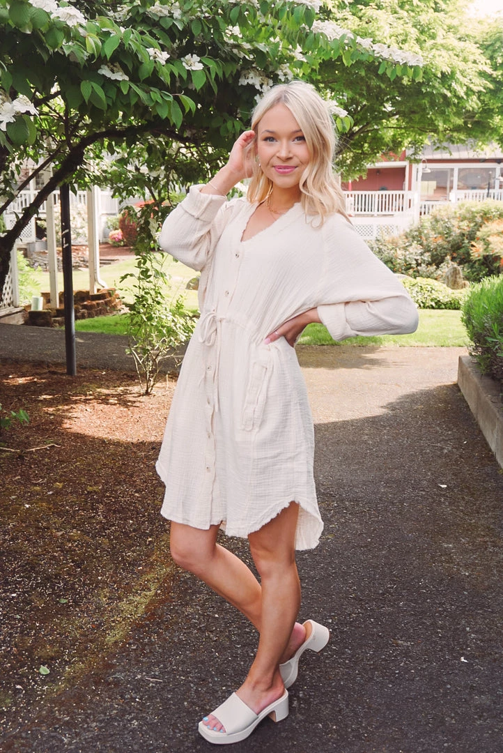 The cutest layer & versatile wear! The Beach Comber Tunic is a stylish gauze shirt that could be worn as either an outwear or a dress. Featuring cut edge detailing, open front design, a relaxed fit & side pockets.