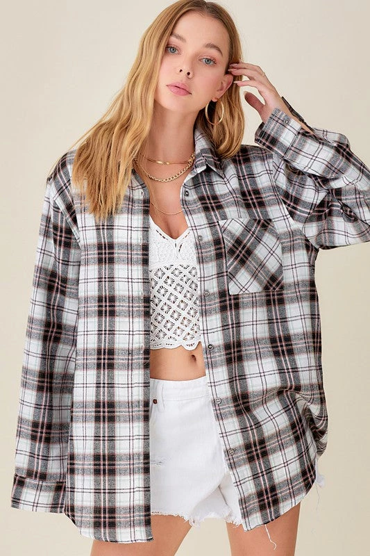 Your new favorite daily plaid shirt made of soft and lightweight fabric with long sleeves, buttoned cuffs and patch pocket at the chest. Pair with just about any bottom layered or by itself for a great transitional style!