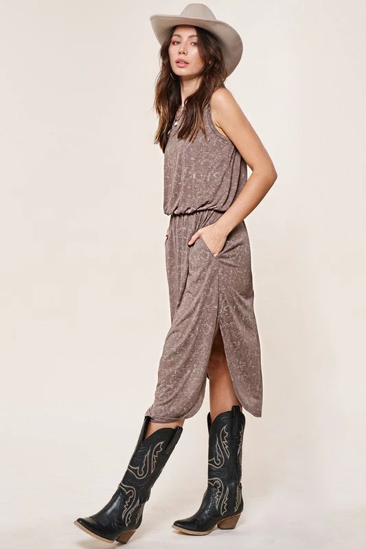Easy-to-wear & cute too! The Kaden dress features a soft feel, side pockets, elastic waist, leg opening on either side, and a relaxed fit. This comfy dress can be styled with boots or sneakers for a versatile wear!
