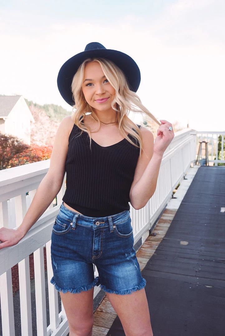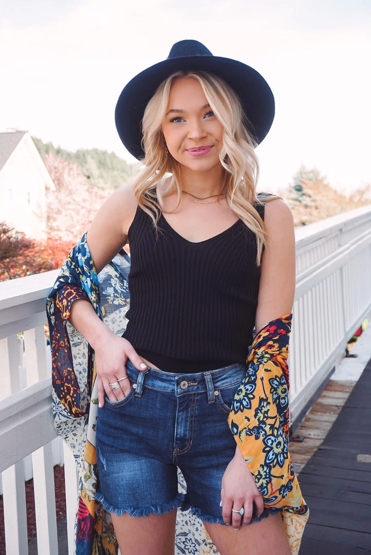 Cute & comfortable! The Lei Knit Tank is a must have layering piece featuring a front and back v-neck and a light weight soft fabric with a stretchy ribbed design for an easy fit.