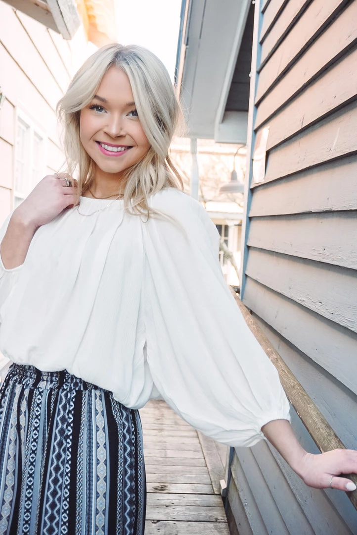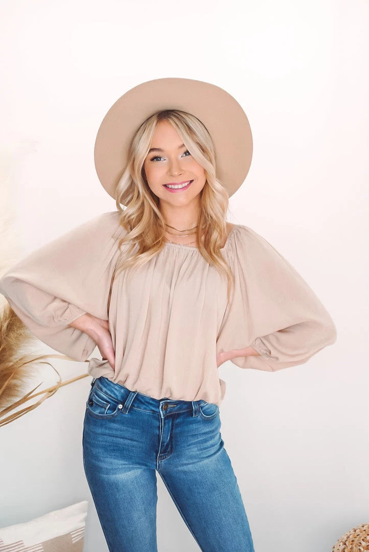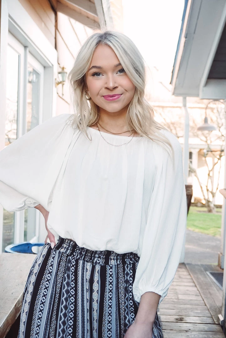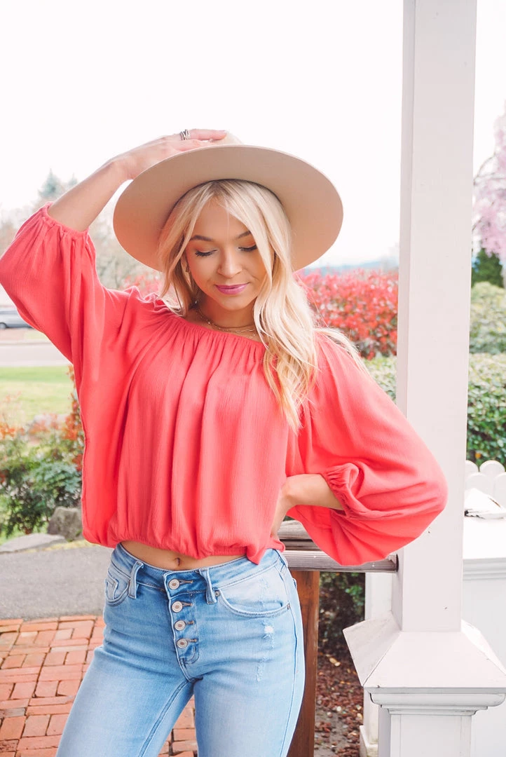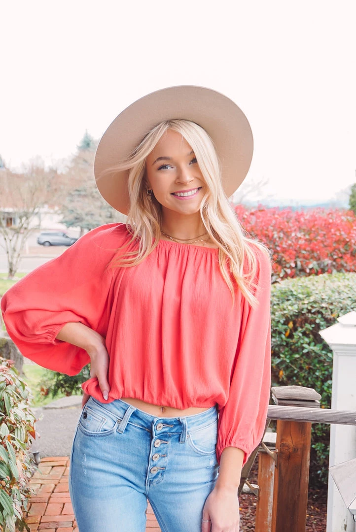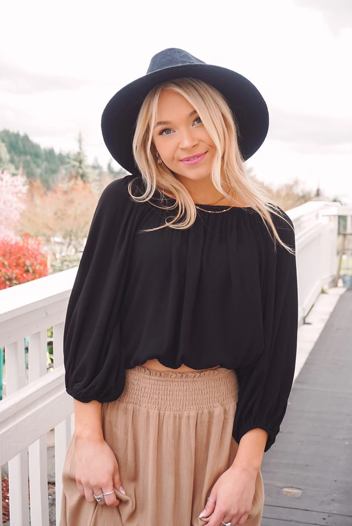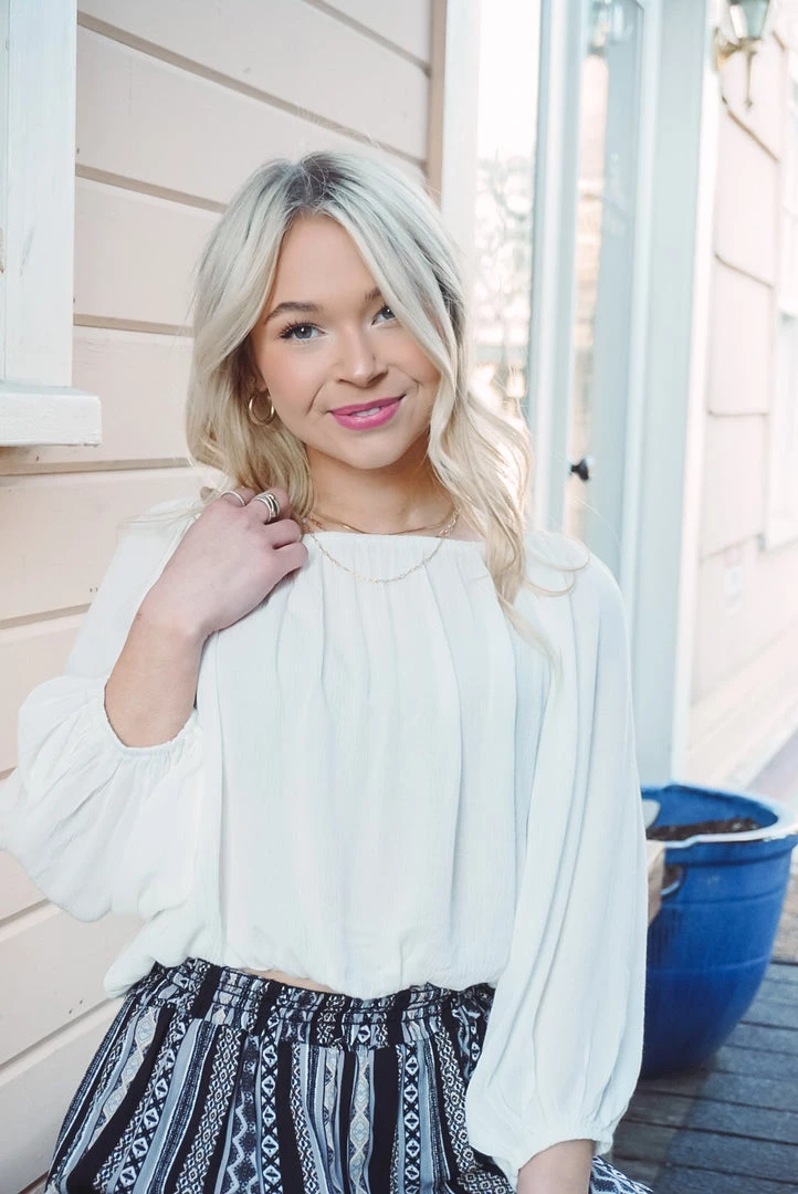 A lightweight blouse that can be worn on or off the shoulder. Stun all season long in this effortless top featured in a super versatile neckline for an off the shoulder or classic square neck silhouette with elastic sleeves and hemline.