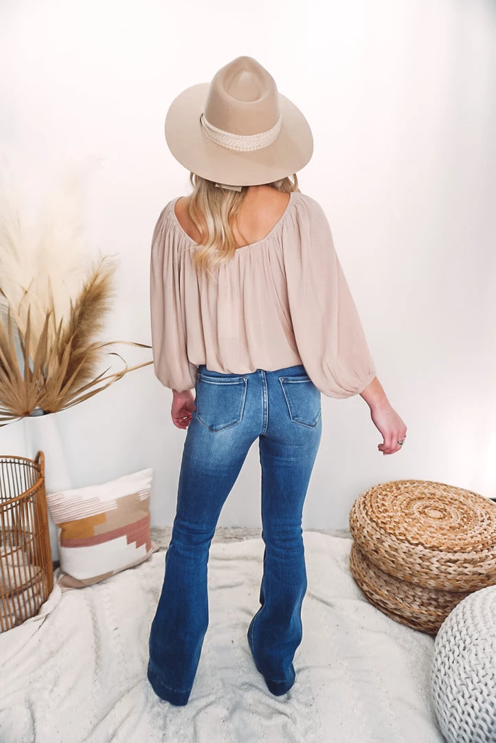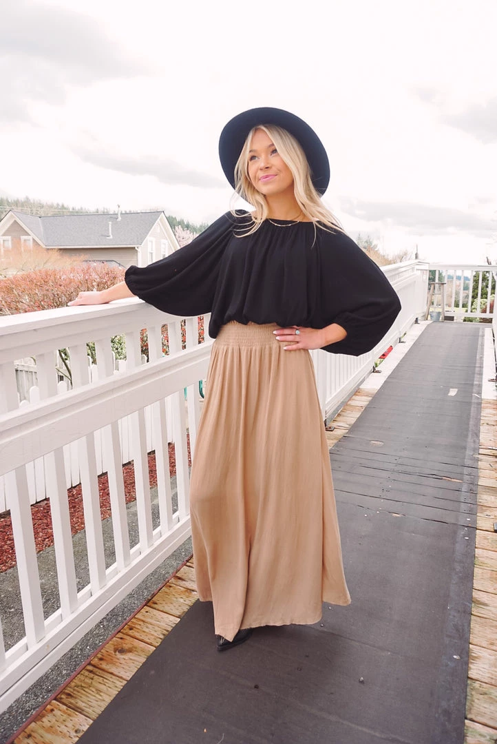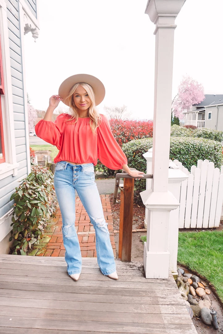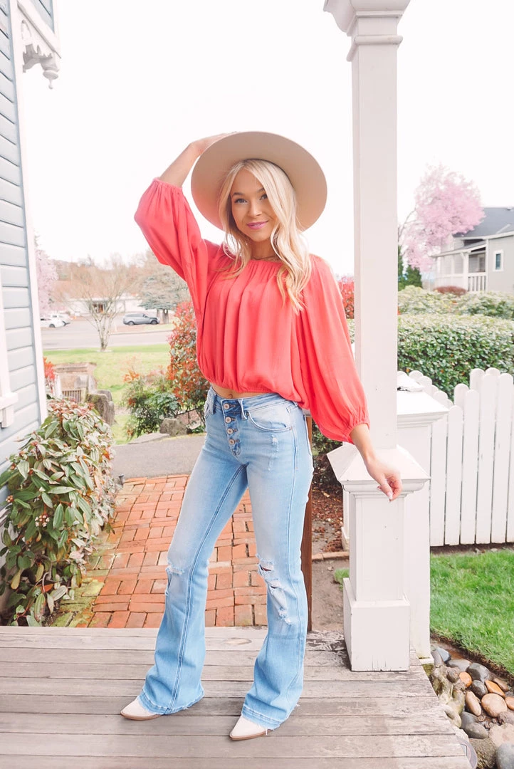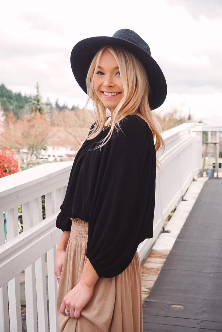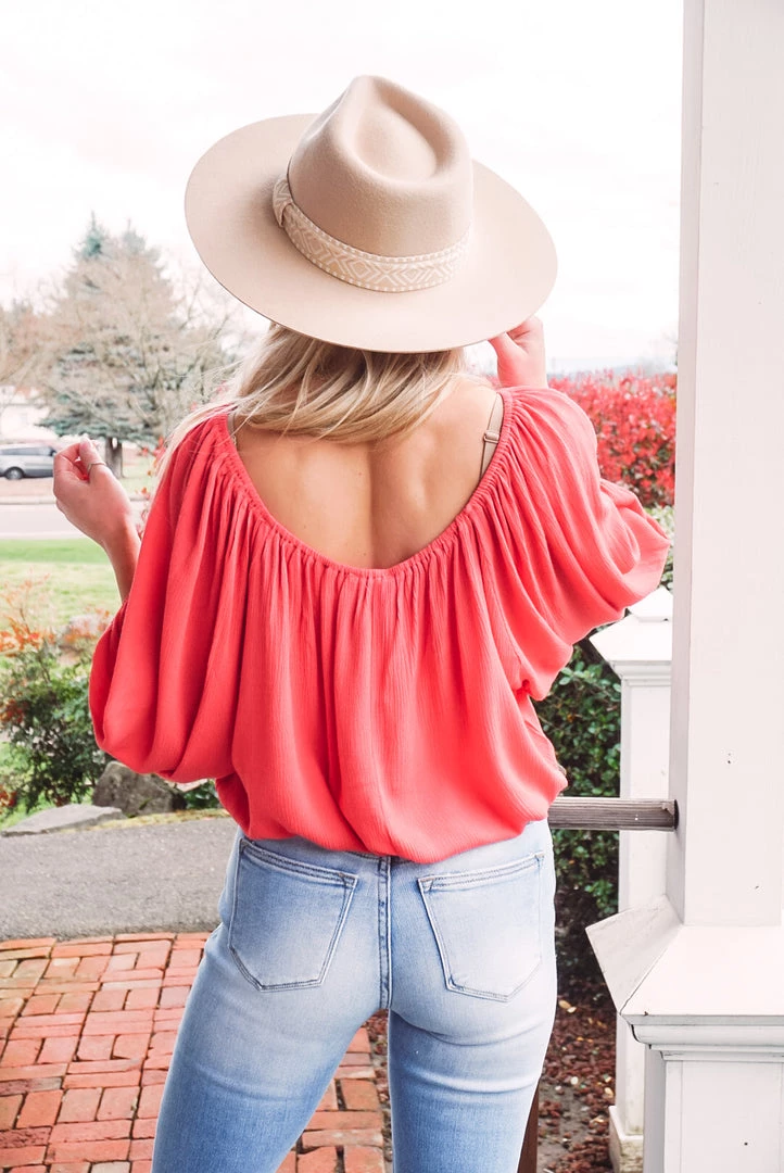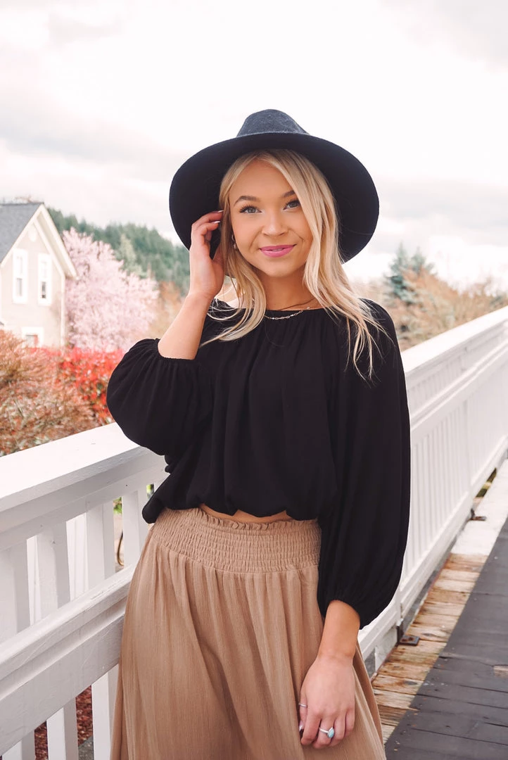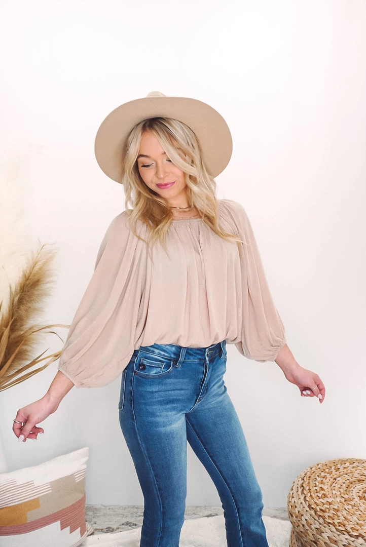 A lightweight blouse that can be worn on or off the shoulder. Stun all season long in this effortless top featured in a super versatile neckline for an off the shoulder or classic square neck silhouette with elastic sleeves and hemline.
