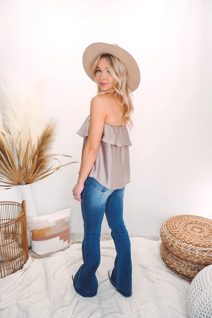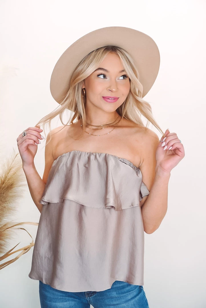 How cute is this ruffle top for spring & summer? The Lucia Top features an strapless-off shoulder design, Ruffle overlay, silky feel, and a relaxed silhouette. Pair with your favorite bottom layered or by itself for a unique style!
