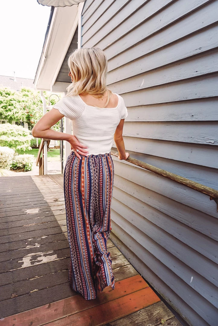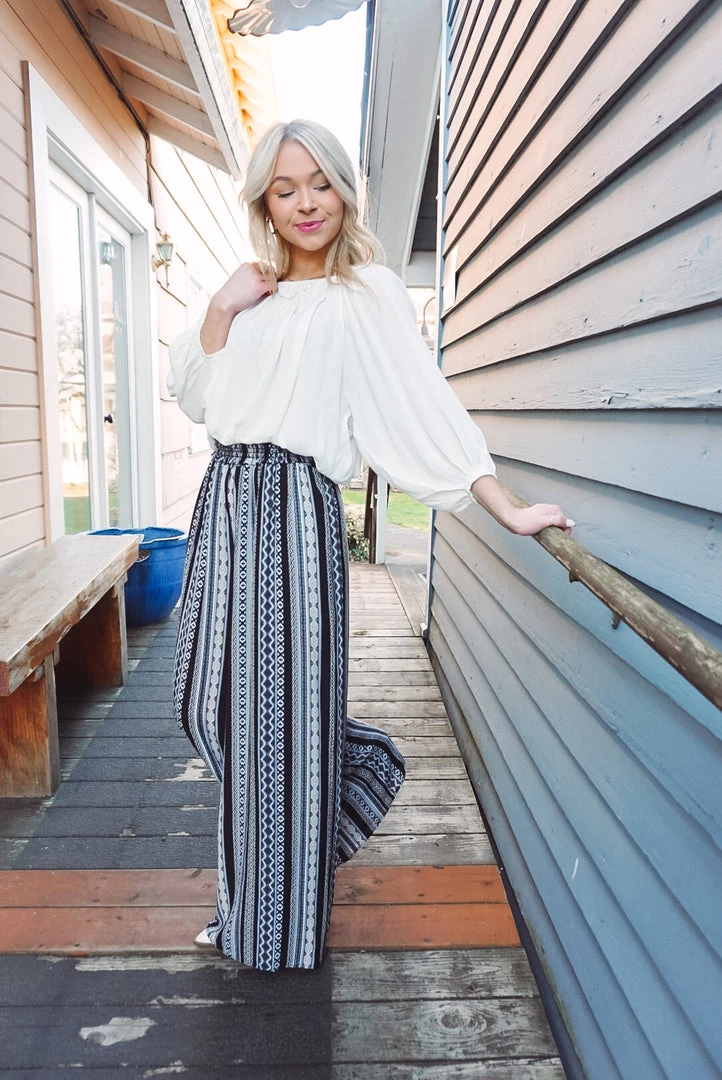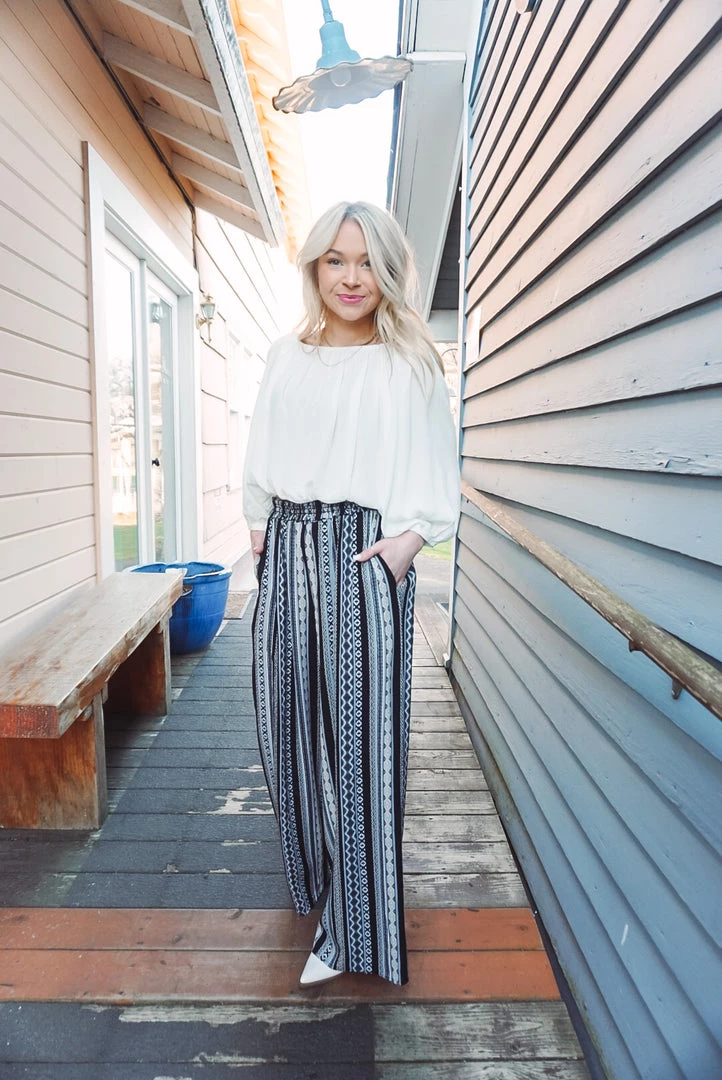 Comfortable yet so cute! The Mina Palazzo Pant is a wide leg style with lightweight fabric, full elastic smocking waistband, side pockets and high-rise figure flattering silhouette. Pair with any neutral top for a easy wear yet statement style!