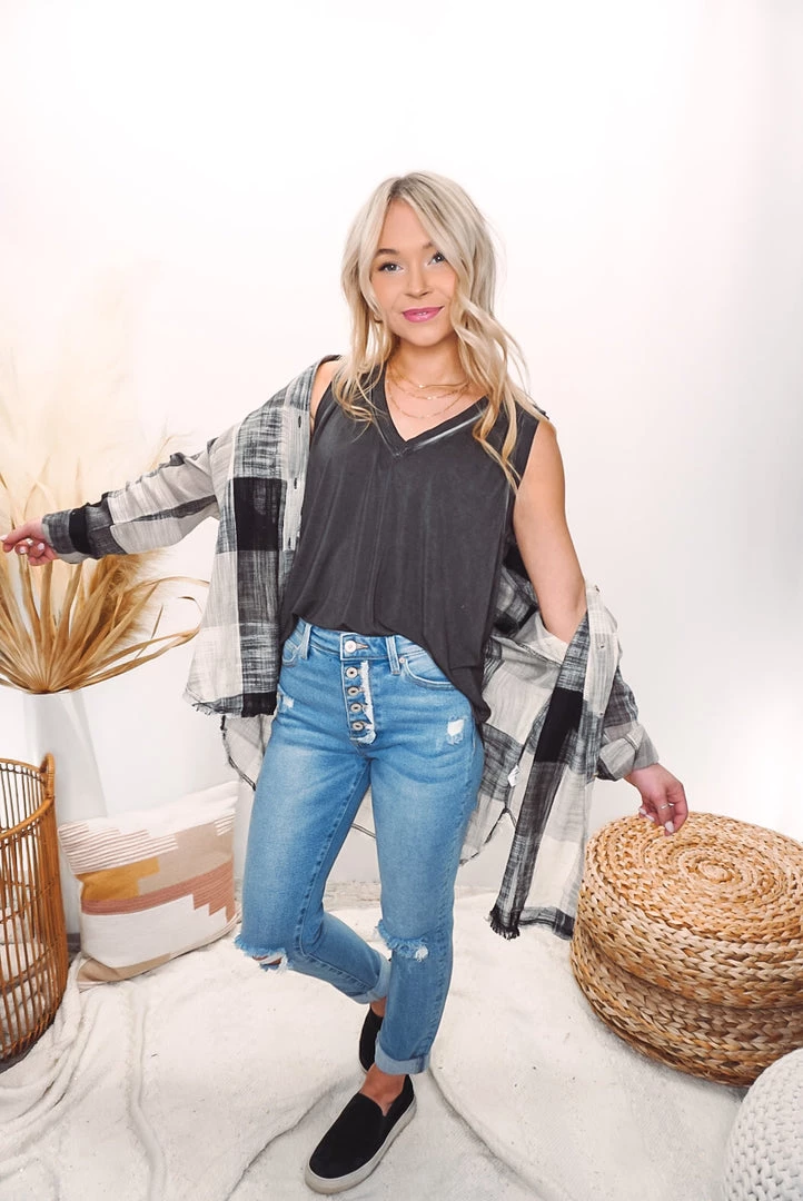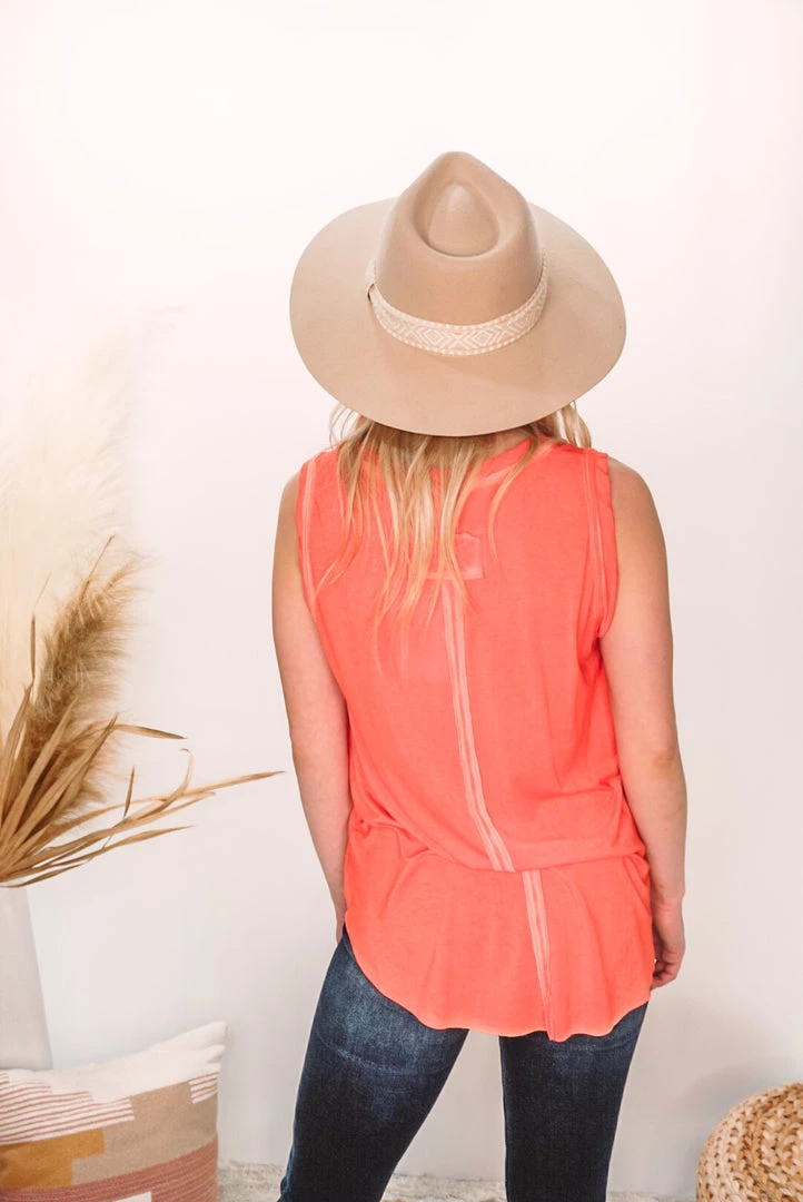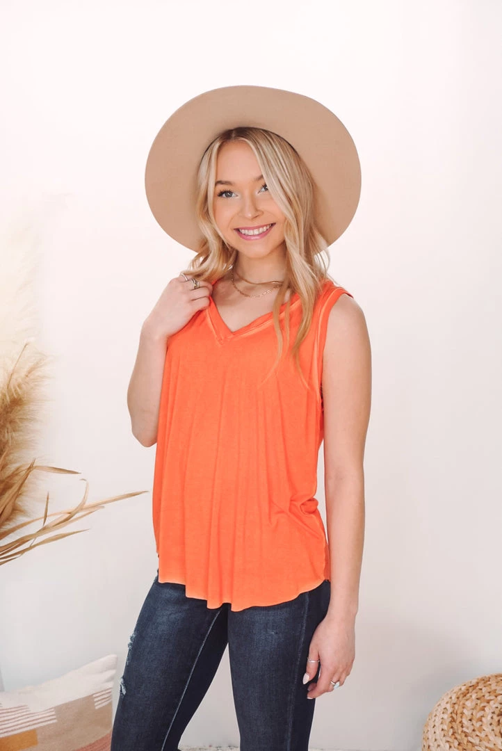 Upscale your basics collection with the reminder tank! Perfect for layering or wearing by itself-this tank features a v neckline, washed dyed fabric, box stitch back detailing, soft feel, and a relaxed fit.