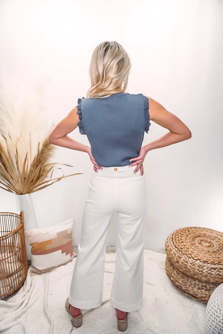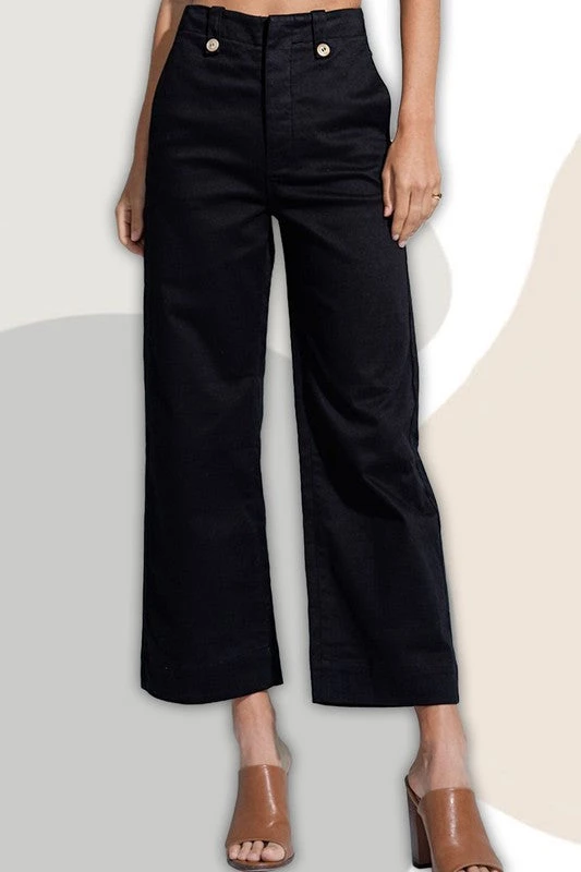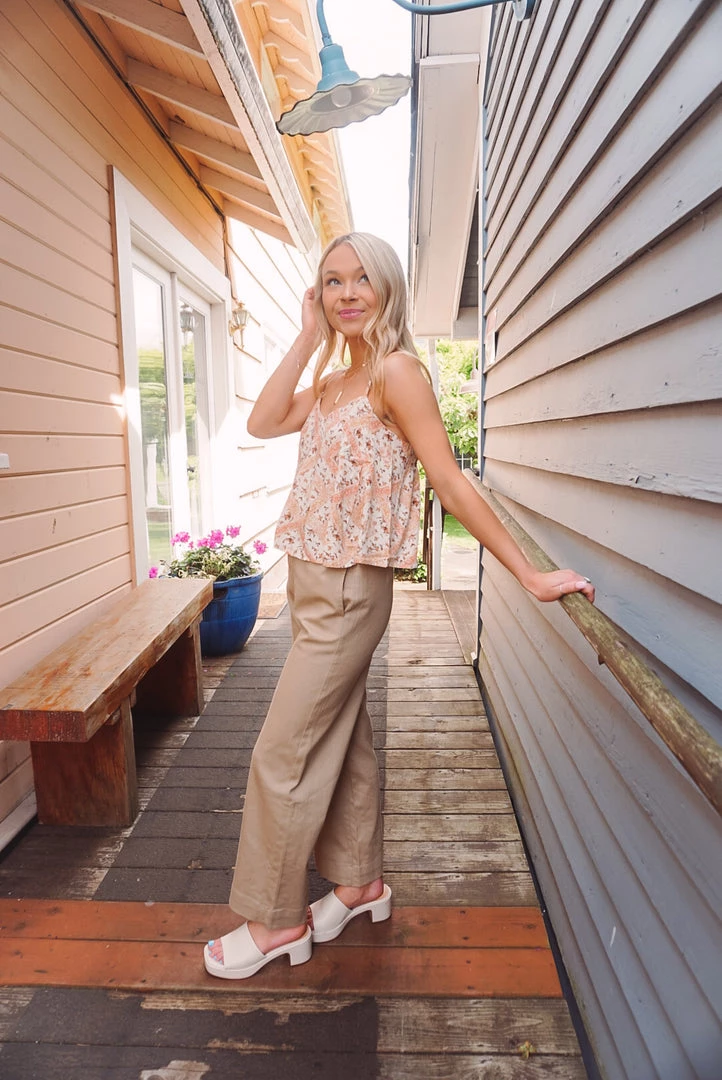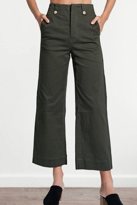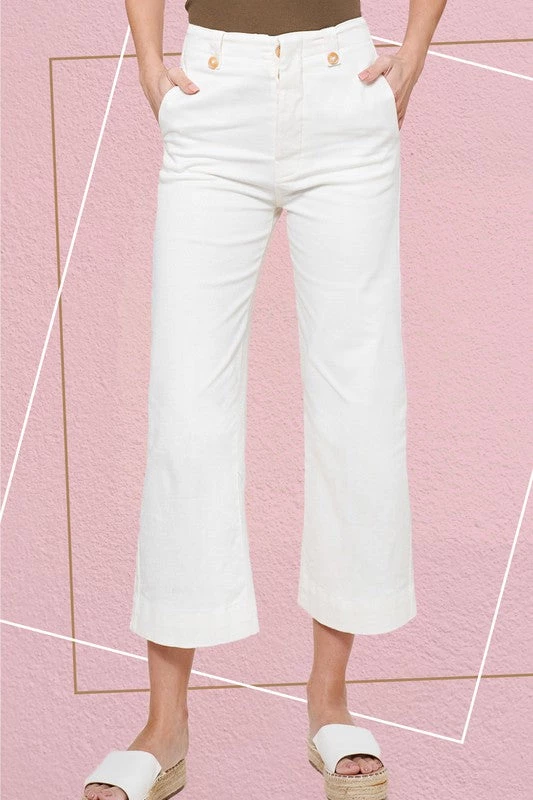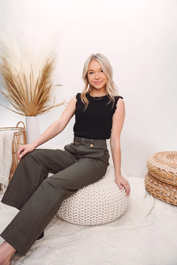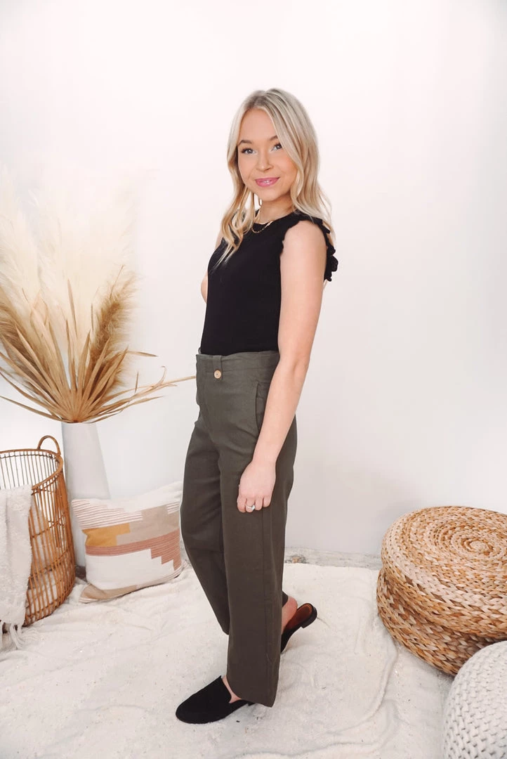The Silo Palazzo Pants are such a great spring piece! Available in 2 colors, these pants have a stretchy feel made from an adaptable fabric giving you a comfortable all-day wear! Featuring a high-rise, button closure at front, and wide leg that hits above the ankle.