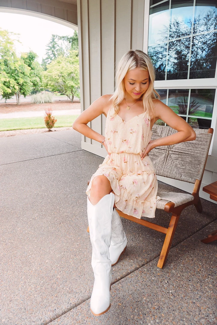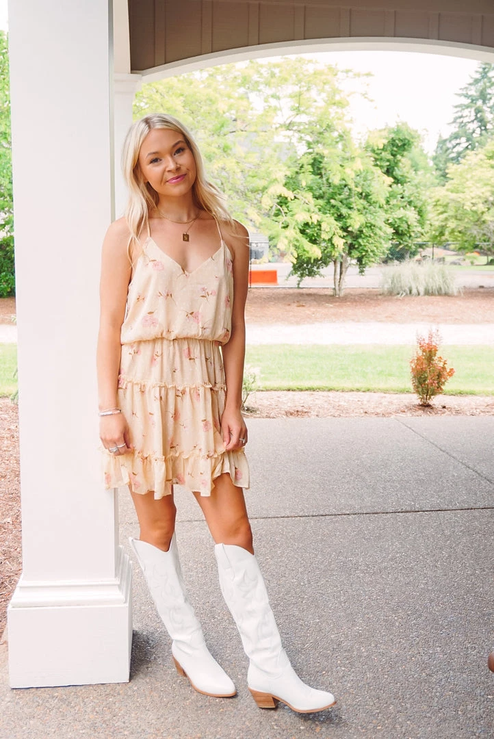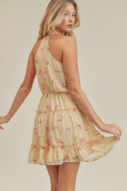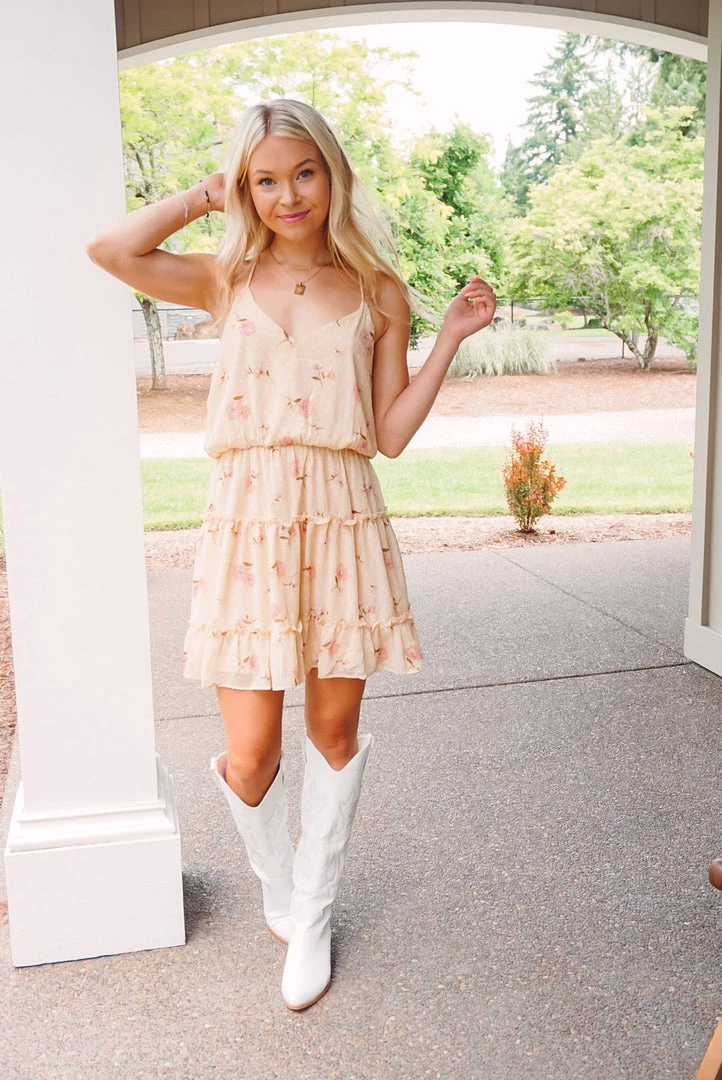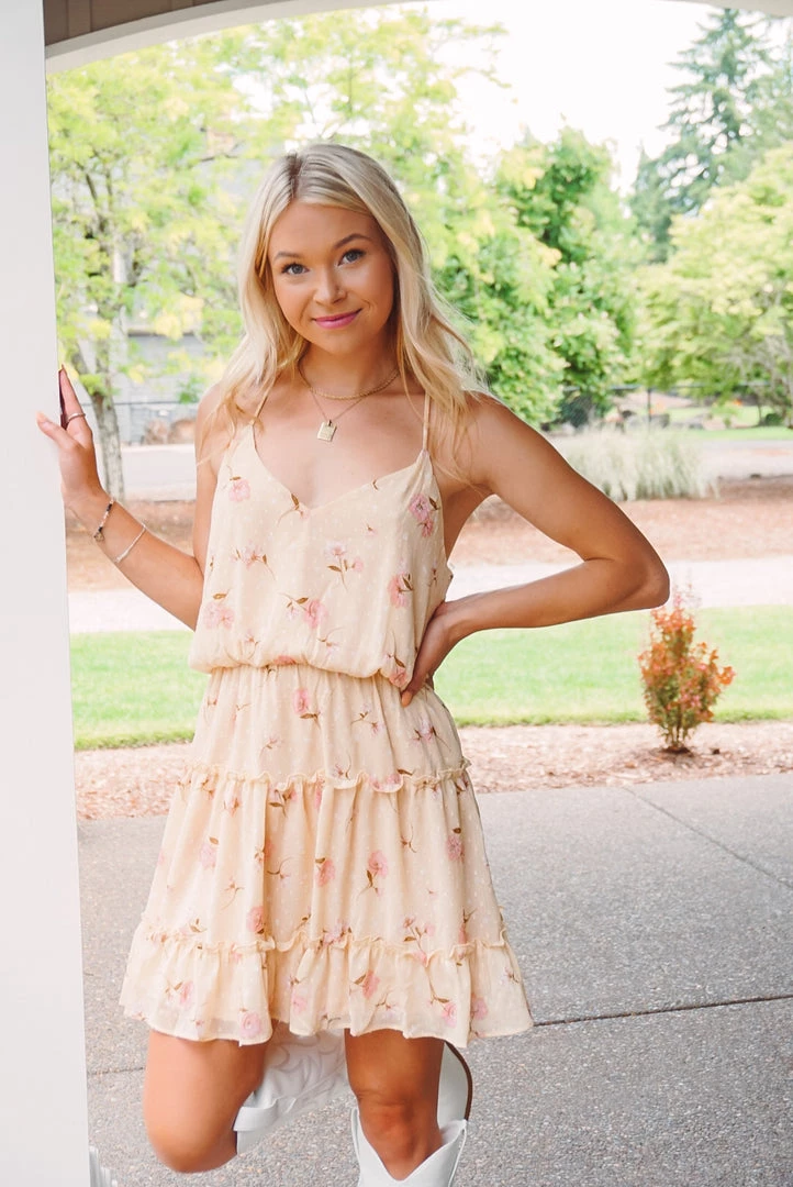 You’re sure to light up the room in our Sunshine Dress! Featuring a darling ditsy floral print, tiered ruffle trim, v neckline, mini length, and a woven feel. Pair with boots or sandals for an easy wear yet perfect summer style!
