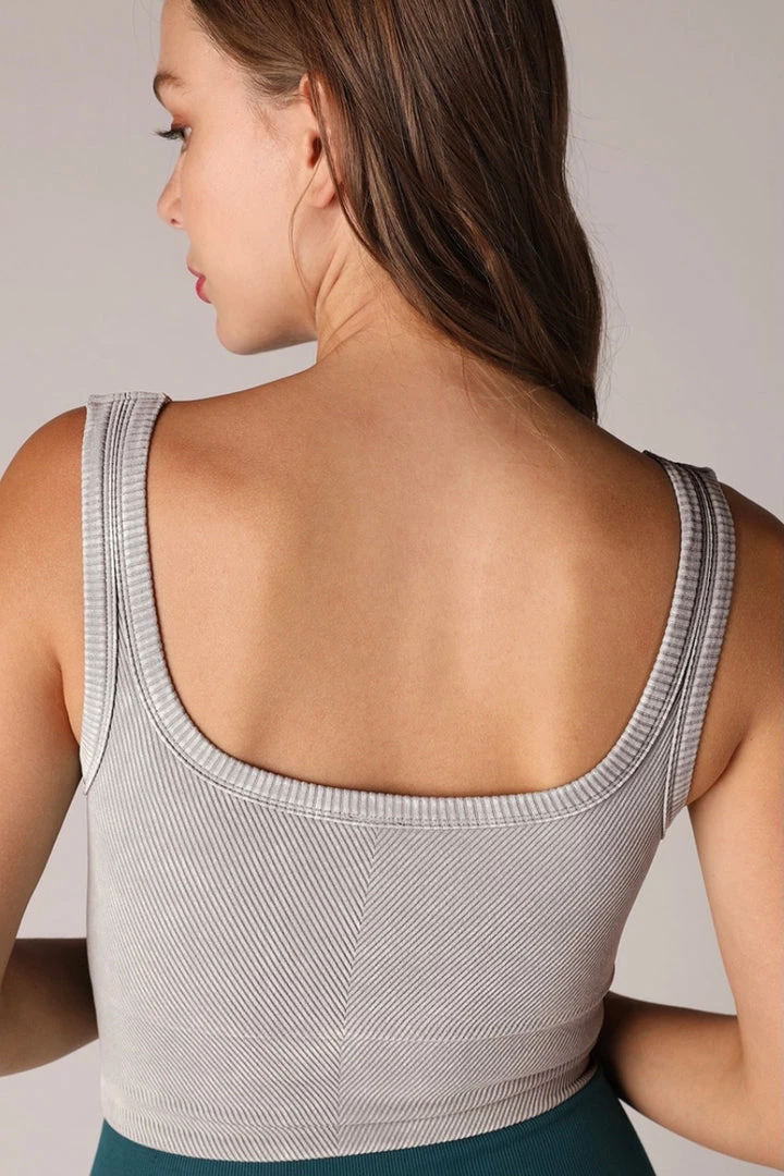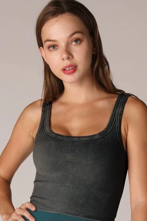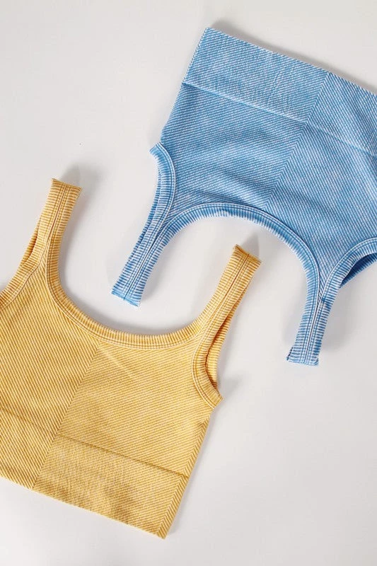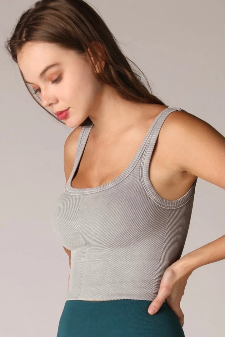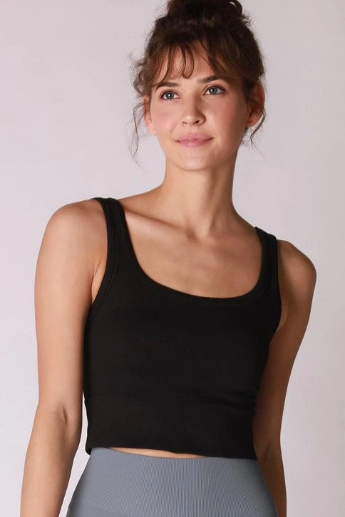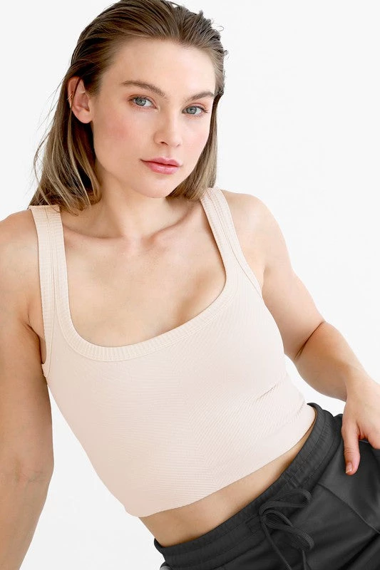 Ribbed knit super stretchy cropped tank with chevron ribbed design. Perfect for layering or wearing by itself and available in several colors.