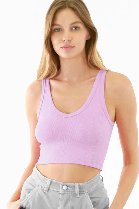 Your new fav NikiBiki tank! Featuring the same feel you know & love, this tank also has a reversible style with a scoop or v neckline. Setting this tank apart is the unique herringbone ribbed construction with a fitted, crop silhouette made from a soft and stretchy seamless fabric that moves with you.