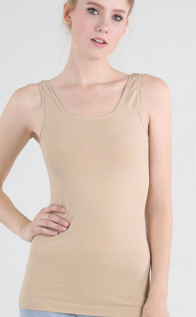This one size fits all tank is one of our most popular basics ever. Signature seamless tank top with wide strap and ultra comfy.