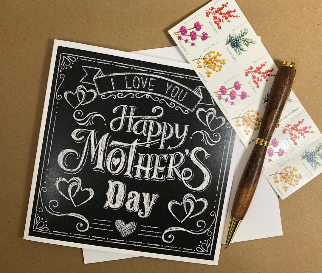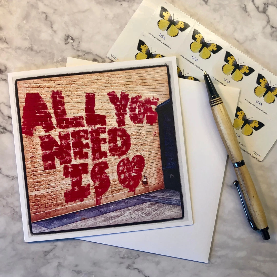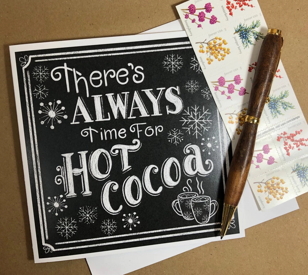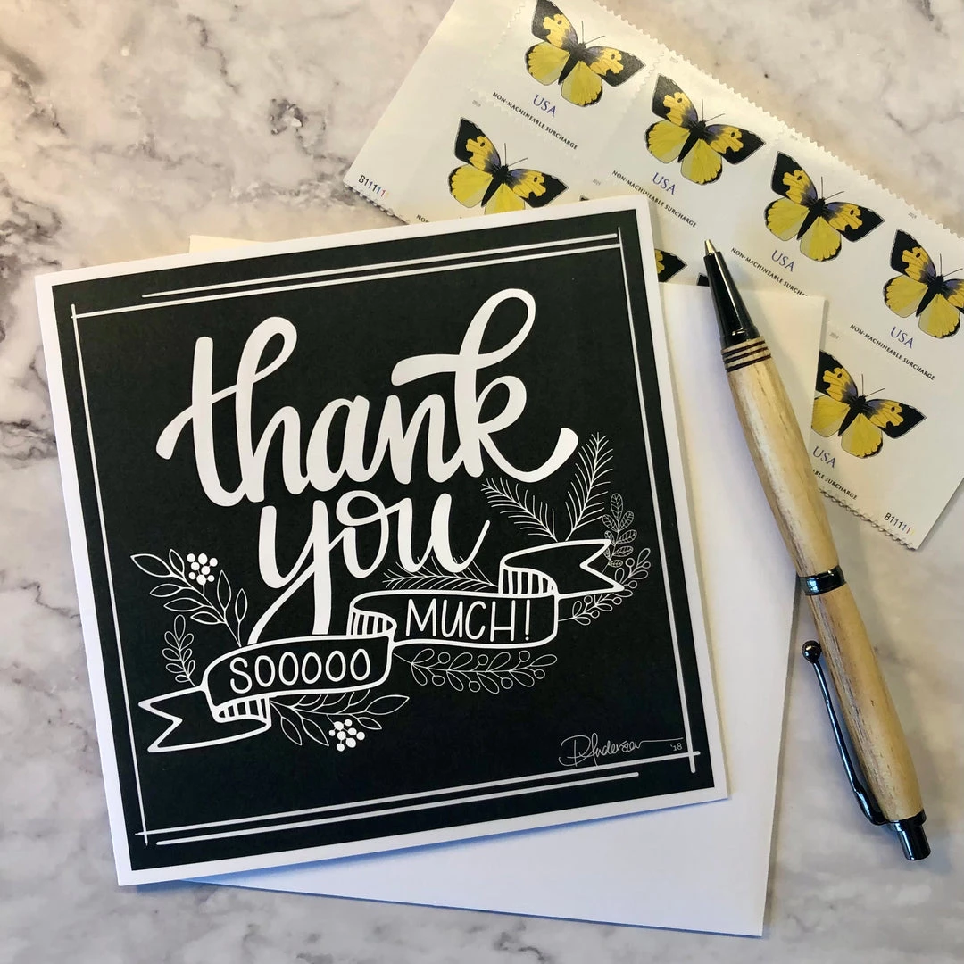 Each card is 5.25” square using 100 lb cougar cover heavy card stock. Envelopes are 5.5” square. Greeting cards are all blank inside.