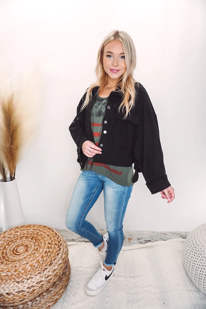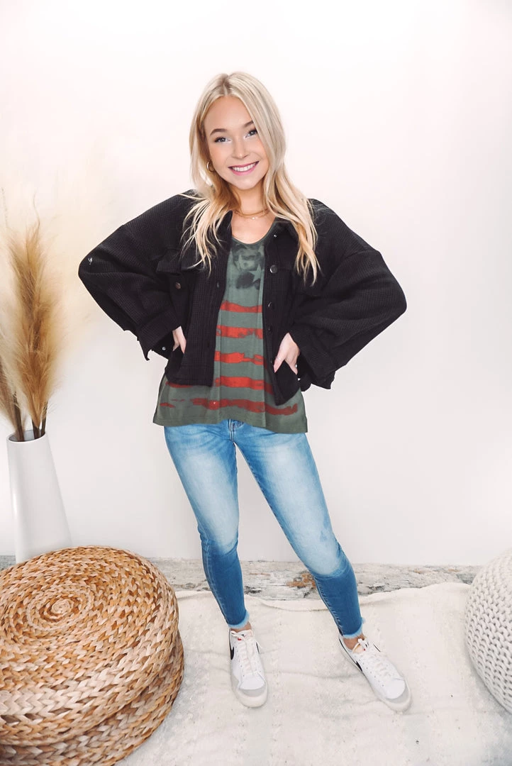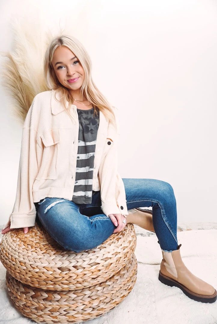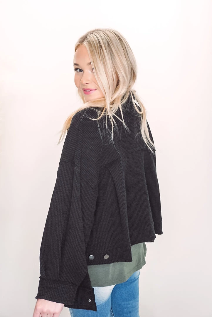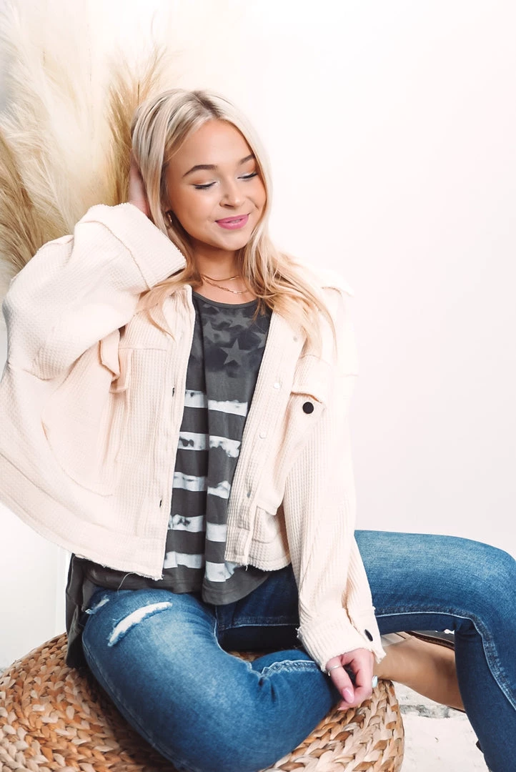 A cute and comfy layer that is such a versatile style! Designed in cropped jacket with big pockets, long sleeves, an oversized fit, featured in thermal knit. Available in 3 colors this jacket can be layered over just about anything paired with your favorite bottoms!