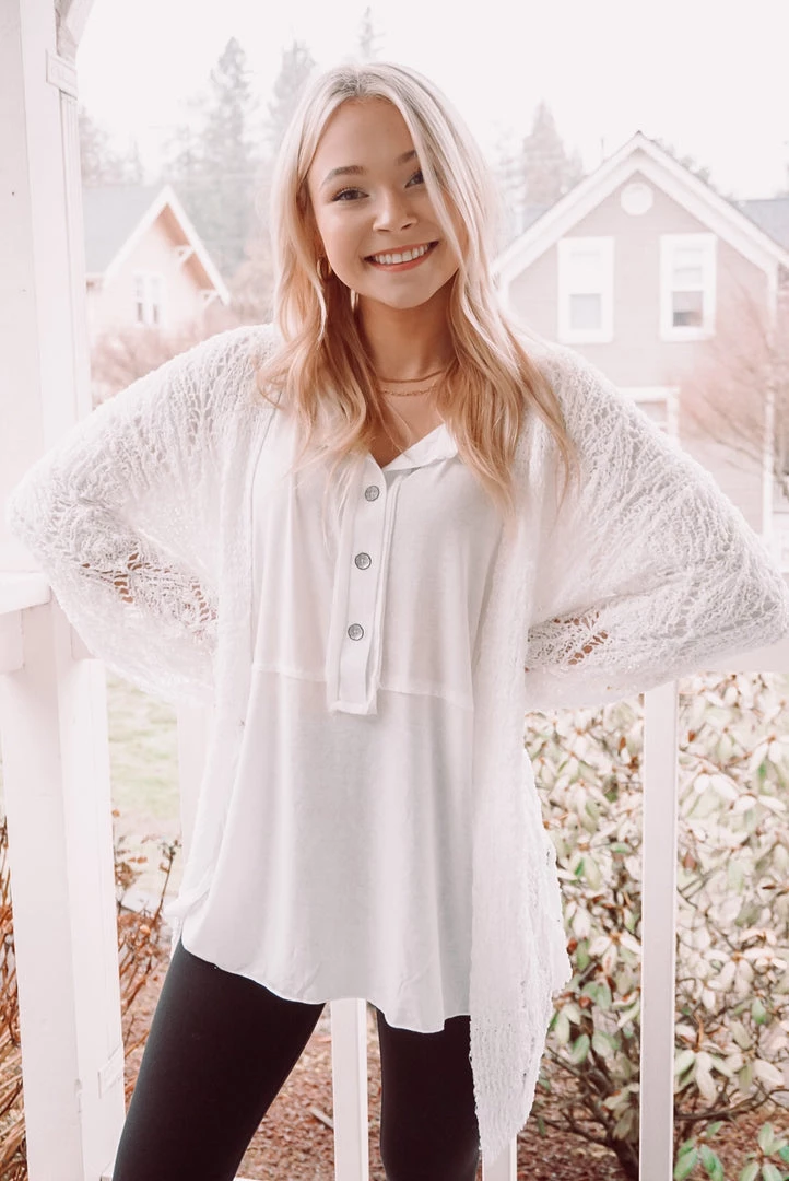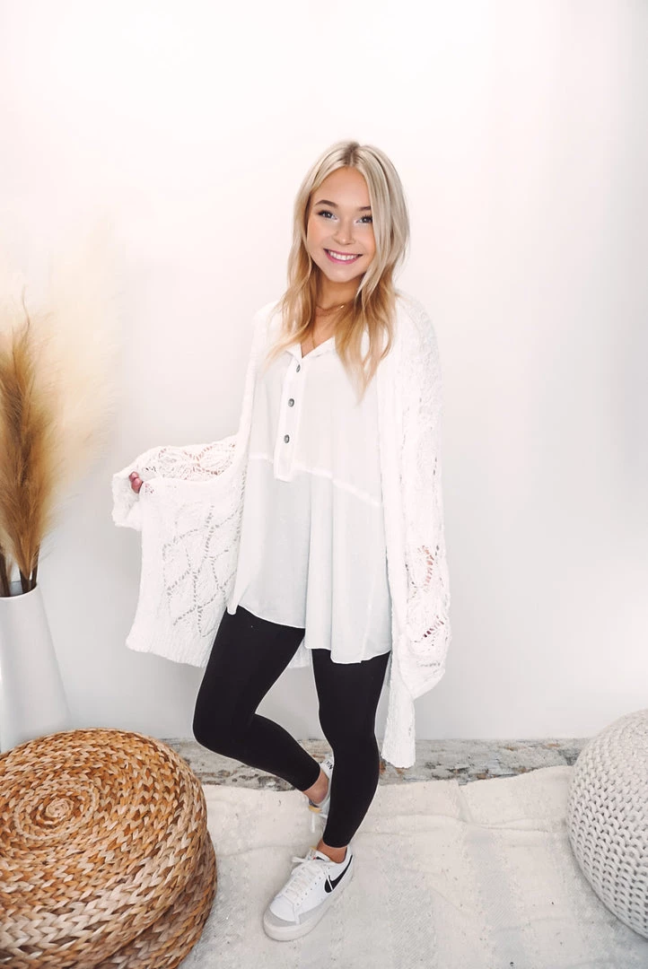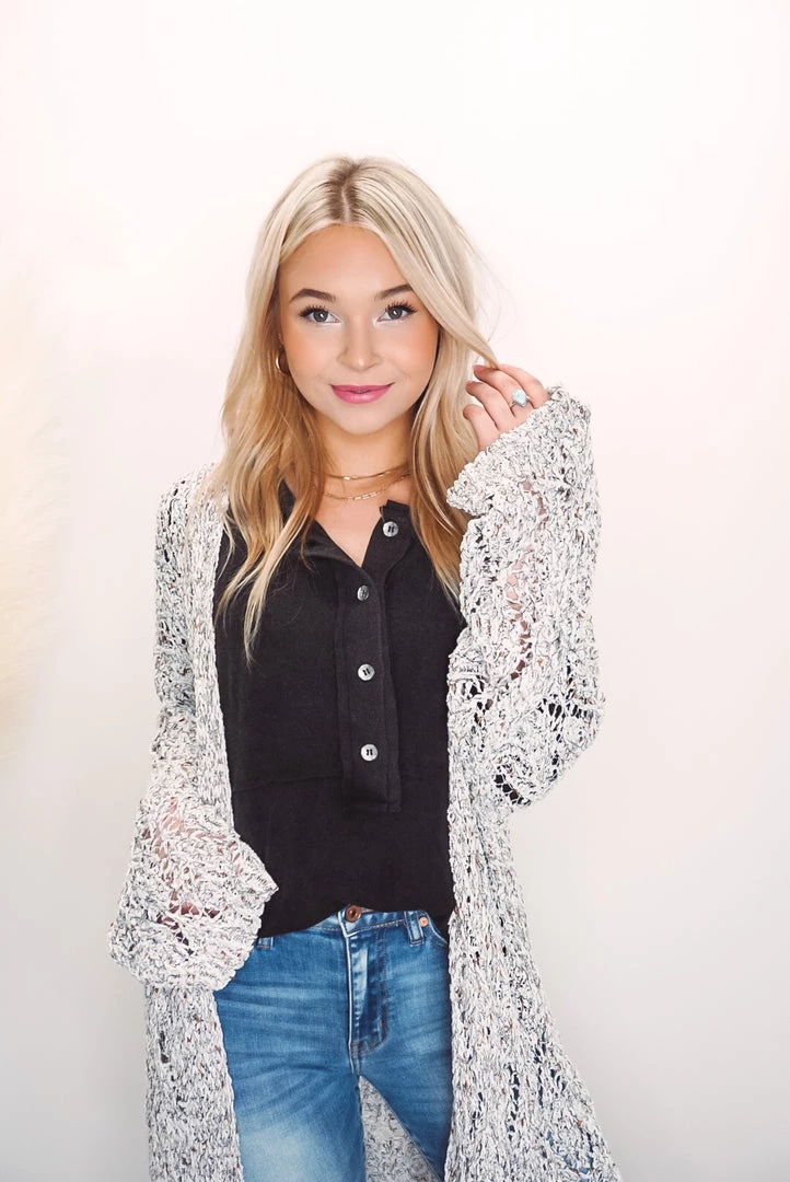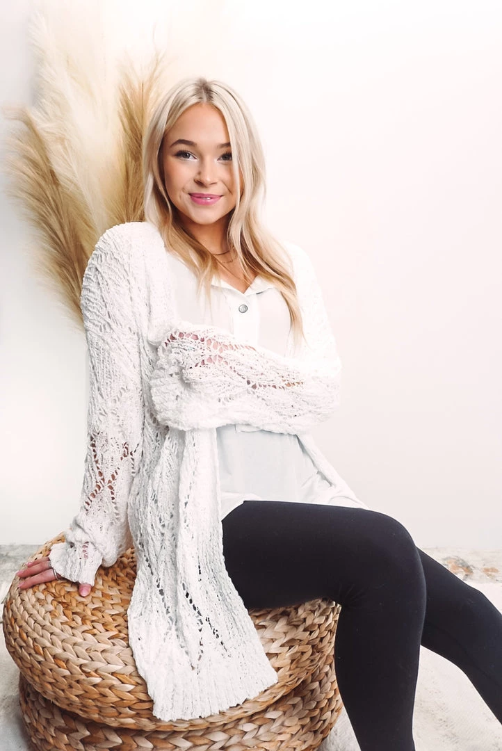 This layer is such an effortless yet stunning style! Designed in open front lightweight, summer confetti sweater cardigan with stretchy loose diamond shape weave, long length sleeve, relaxed fit, and clean hemline.
