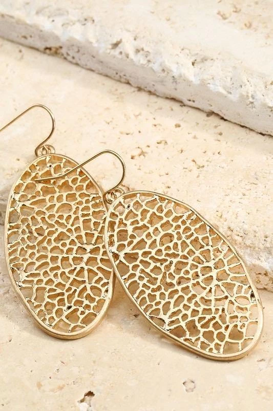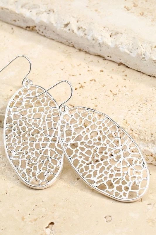 Coral inspired oval dangle earrings. Available in gold & silver.