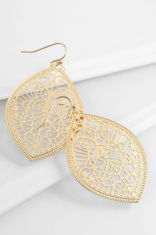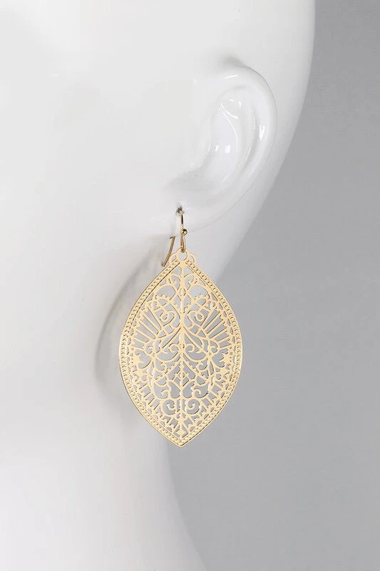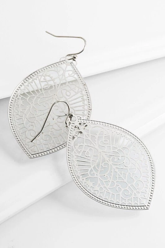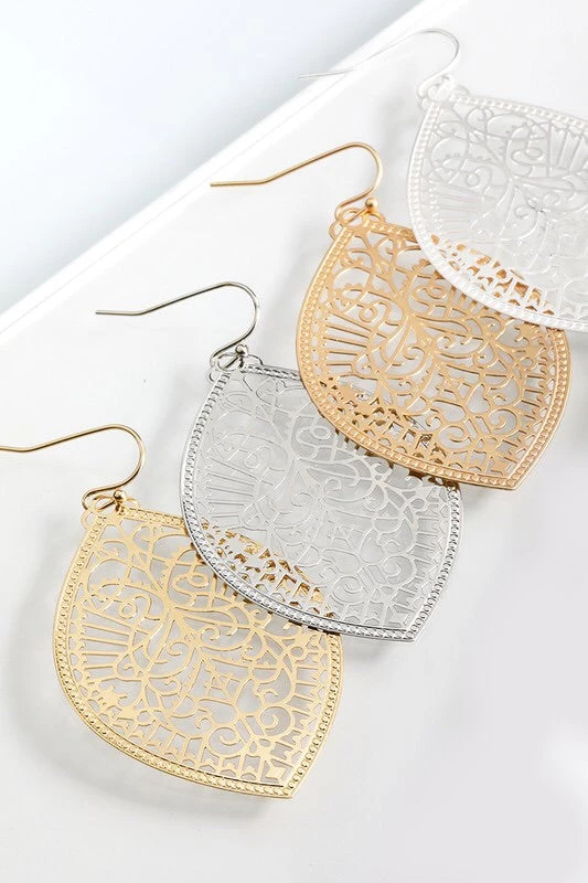 Intricate marquee shaped filigree dangle earrings APPROX. 2″ Nickle/Lead Compliant