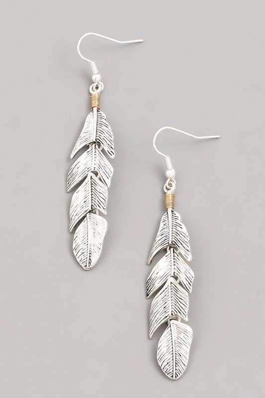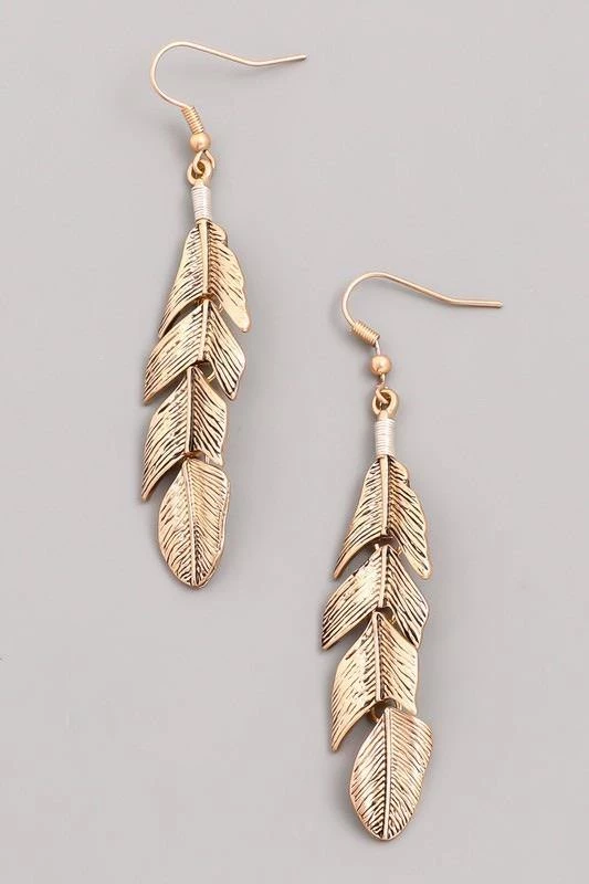 Detailed drop earrings with a leaf style. Available in silver and gold