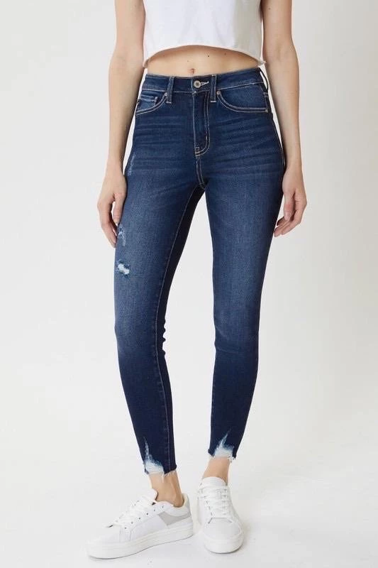 Your Fall wardrobe isn’t complete until you add this pair of skinny jeans to your closet! Featuring distressed detailing throughout, unfinished distressed hems, whiskering, fading, a mid-rise waist line, contrast stitching, and a 5-pocket design, this style is perfect for any occasion! ** we recommend sizing down one size!