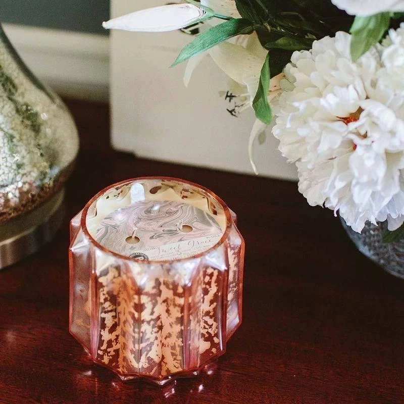 Undeniably warm, peaceful and pure, Sweet Grace illuminates with effortless beauty. Full-bodied fruits embrace the heart-warming aroma of sparking tea and patchouli for a heaven sent fragrance formula. A rose gold mercury finish twinkles across 021’s accordion-inspired form. Burn Time is 85-95 hours Content/Weight is 23.3oz/660g
