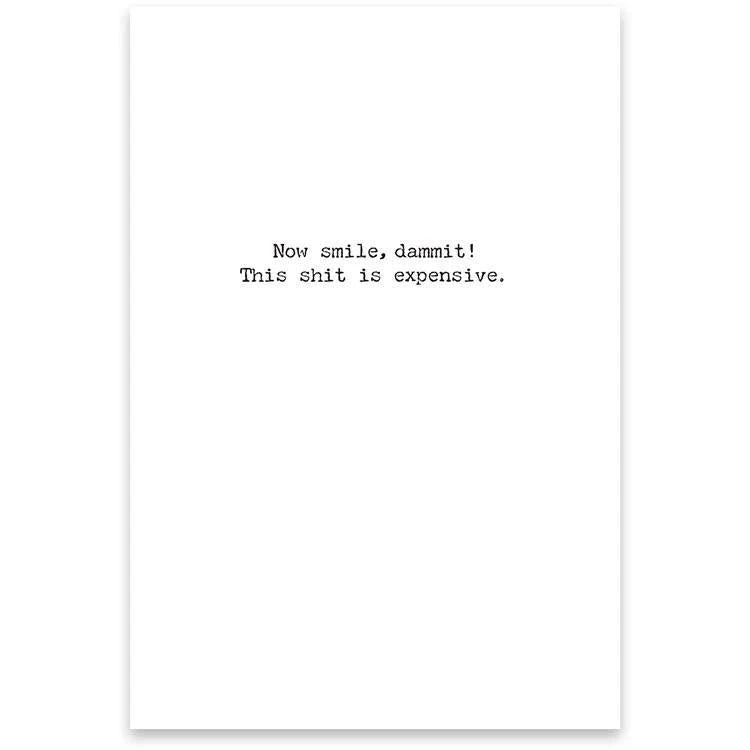 Black and white paper greeting cards with funny sayings inside & out!