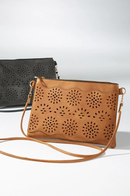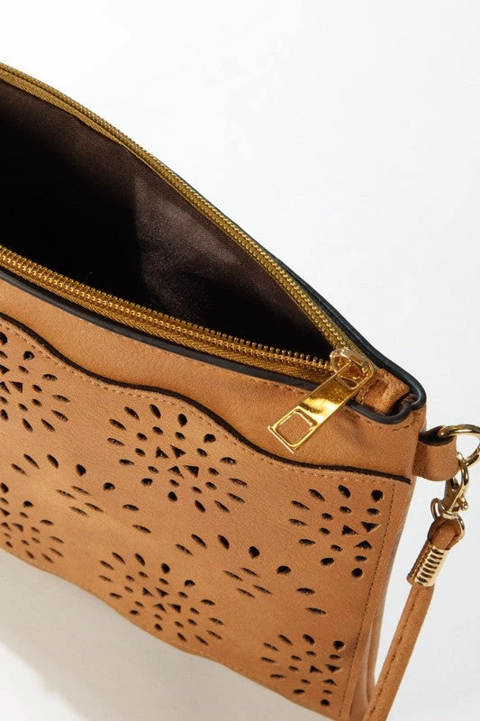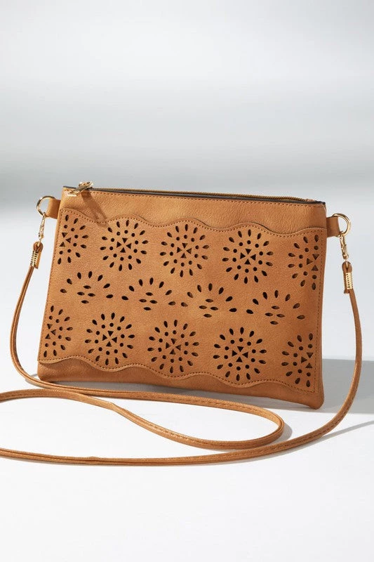 Cute & convenient! The Sunny Side Crossbody Bag is the perfect accessory for spring & summer. Featuring a beautiful laser cut design on faux leather with a fully lined zipper closure in a crossbody bag style. Small enough that it doesn’t get in the way but enough room for all the necessities!
