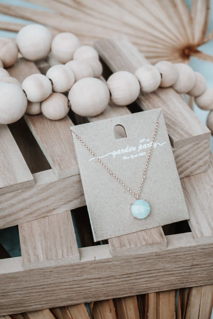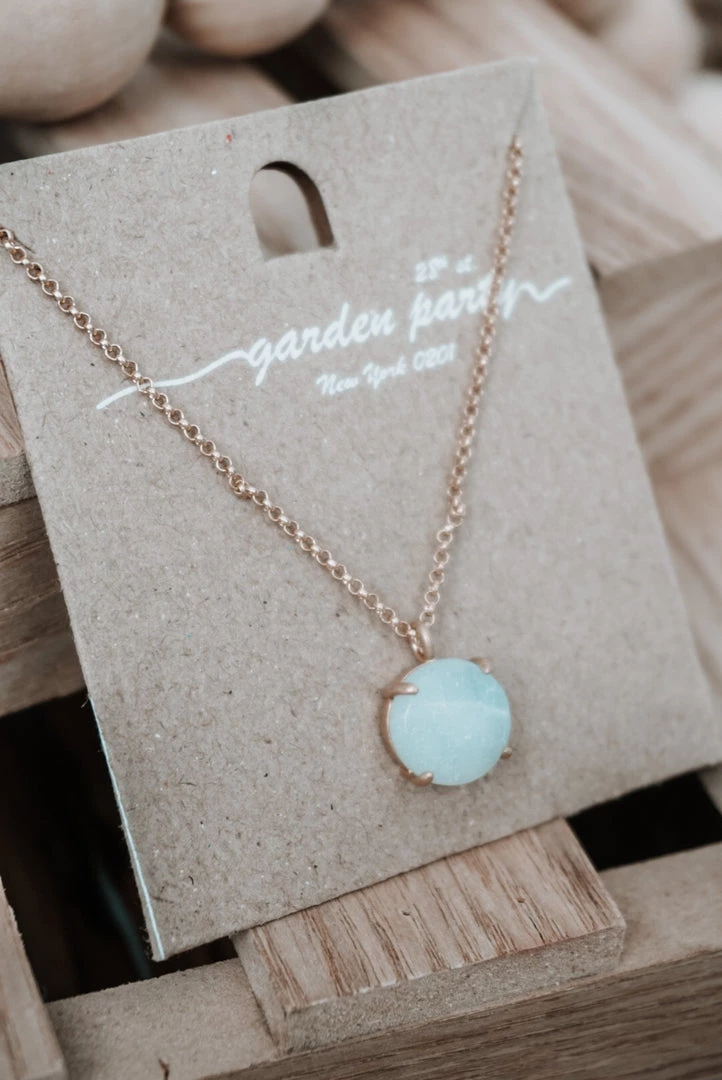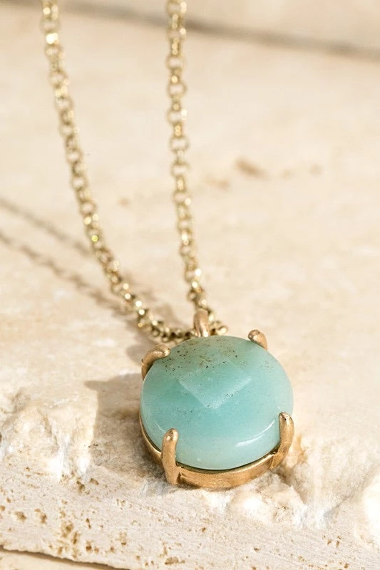 This little necklace is such a cute piece to layer! Featuring a circle natural stone charm in a short necklace style with lobster clasp closure.