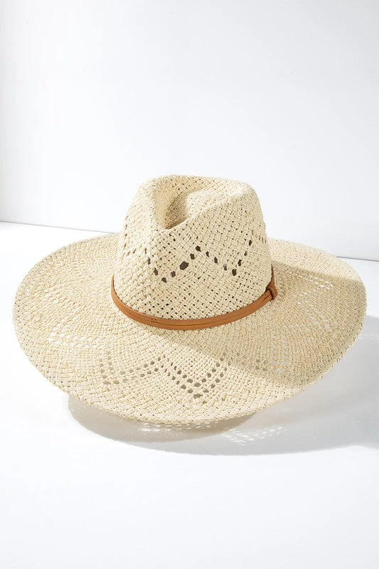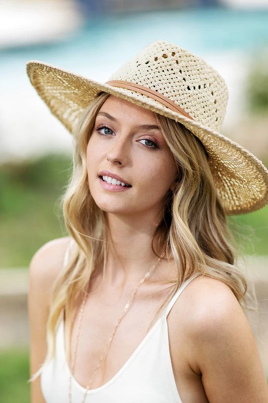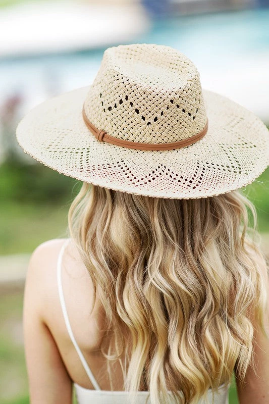 The perfect addition to top off your summer look! The McKay hat features a wide brim, woven style, eyelet accent, and inner adjustable strap.