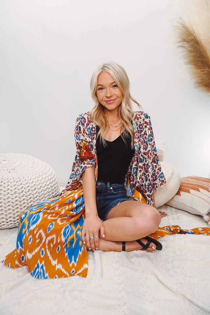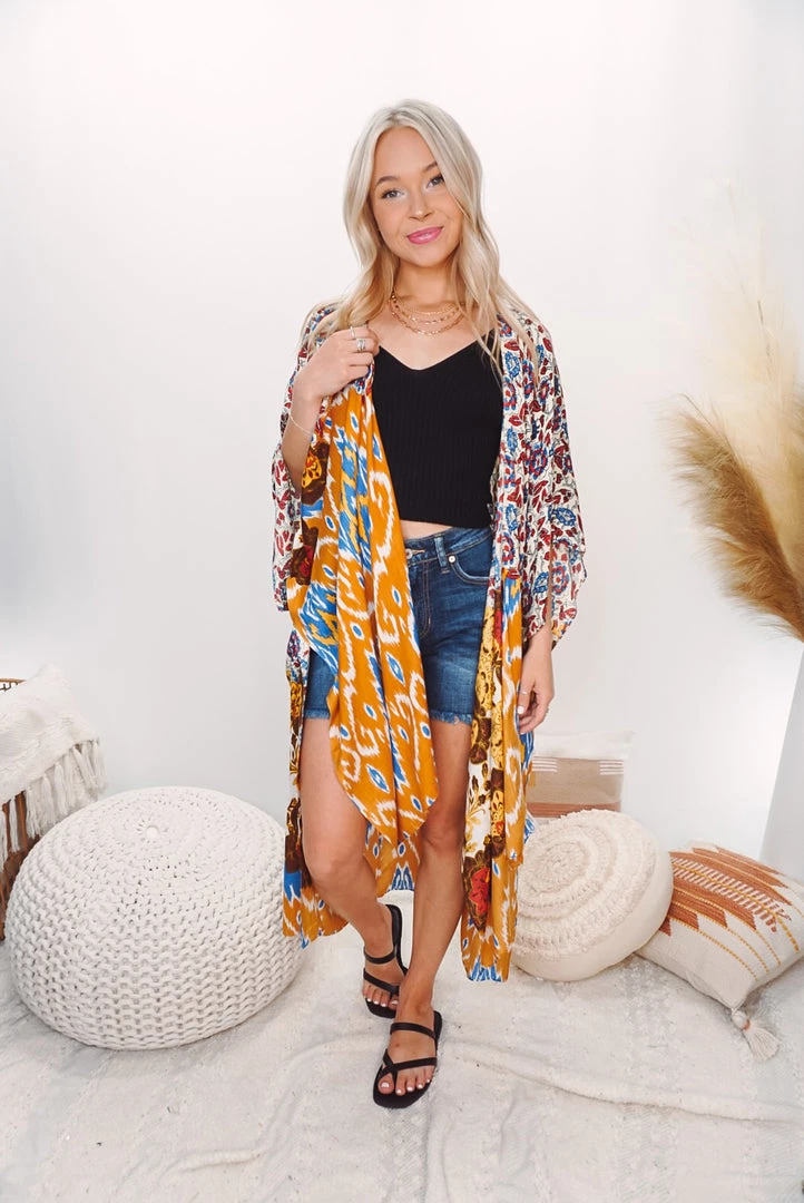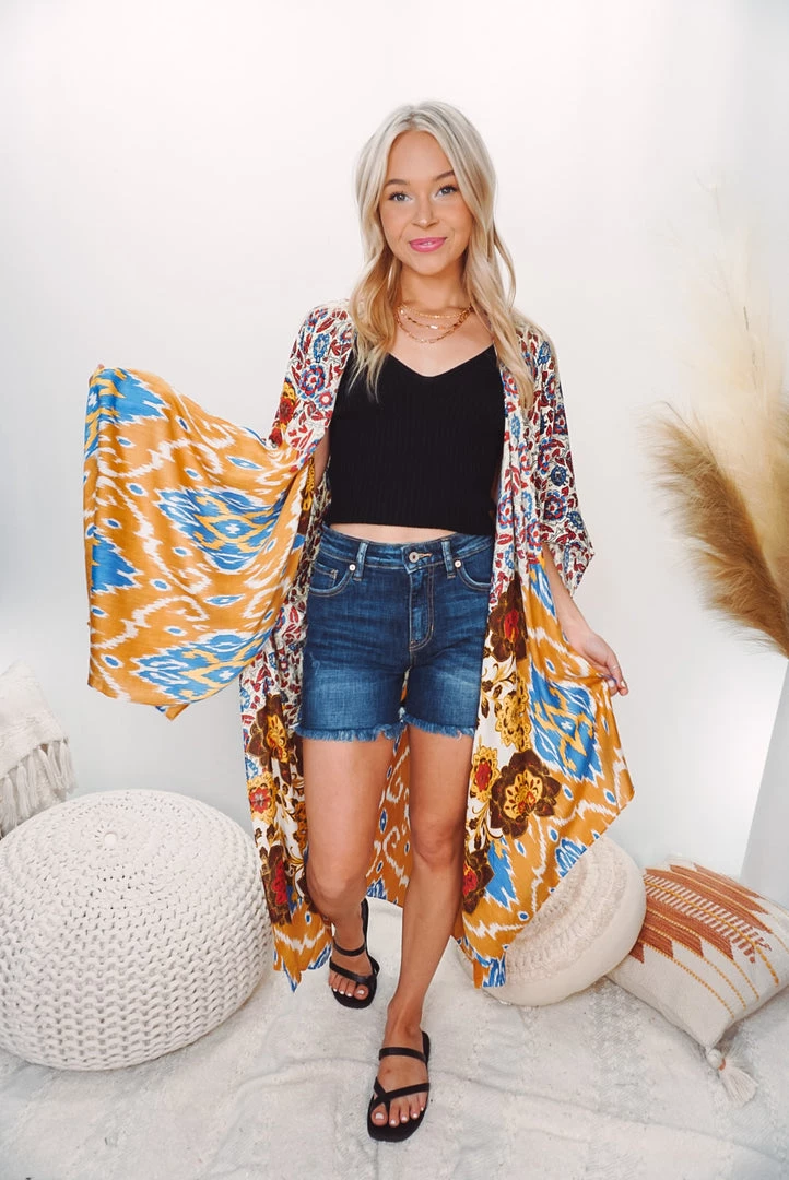 Set for paradise in this kimono! Featuring an amazing lightweight floral print, side slits, open front design, armholes, and a flowy silhouette. Wear as a swim cover-up or layered over your favorite outfit, the options are endless!