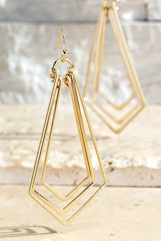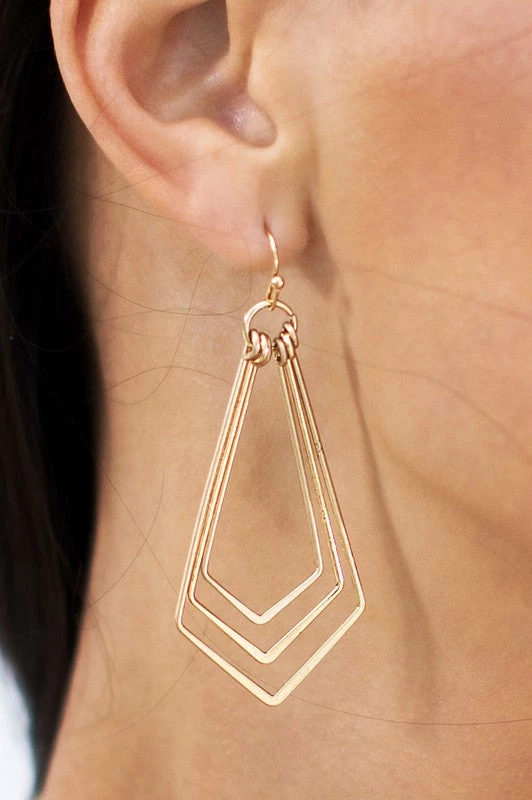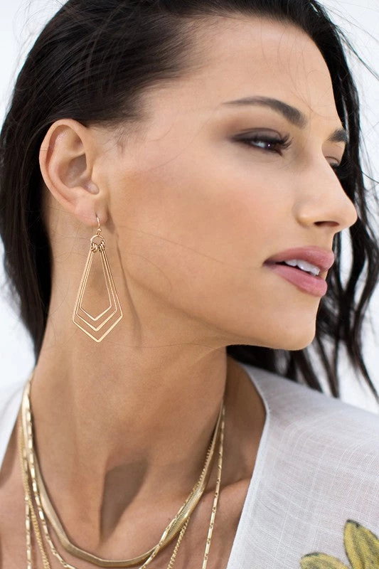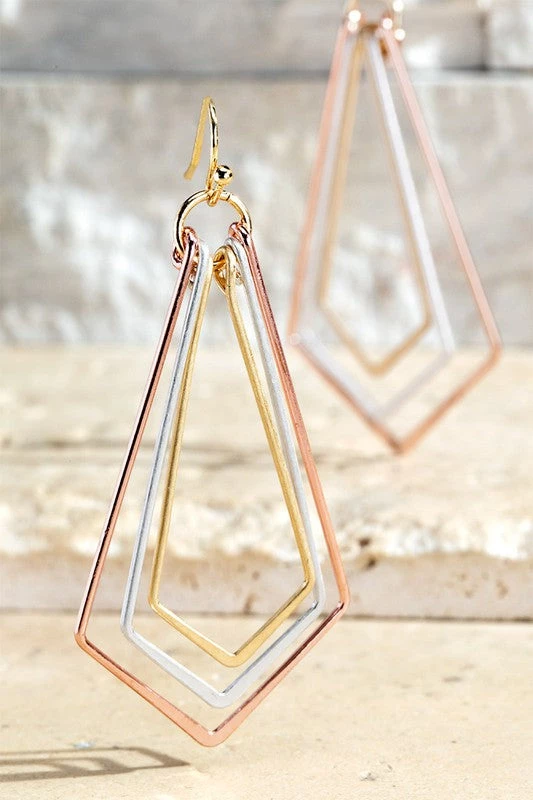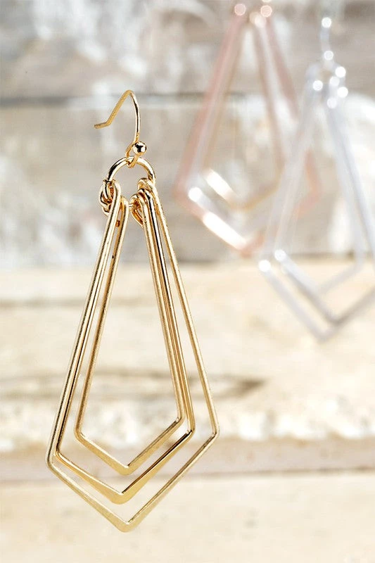 Subtle yet so chic! The Simply Tiered Earrings feature a 3 tier layered worn metal effect pentagon dangle finished in a fish hook style earring. Available in gold, silver, & mixed metals!
