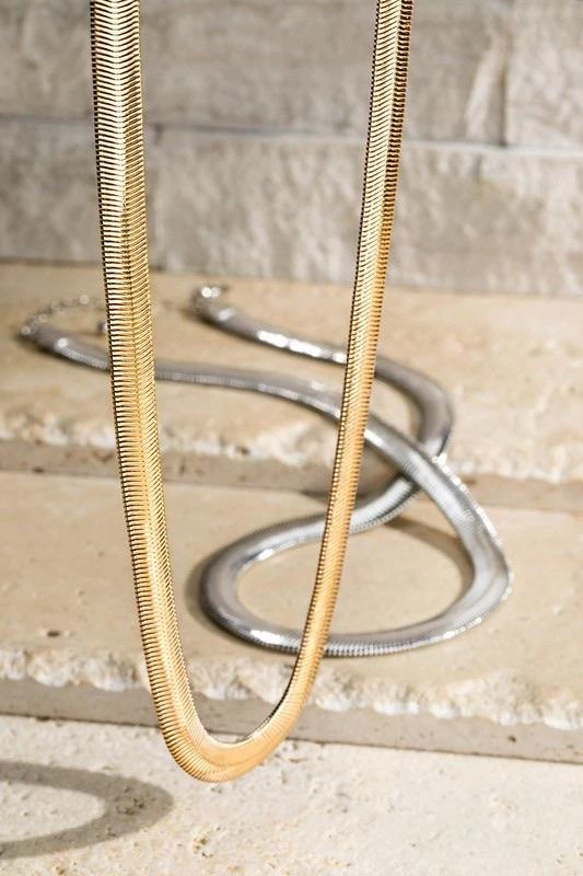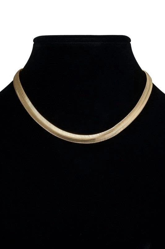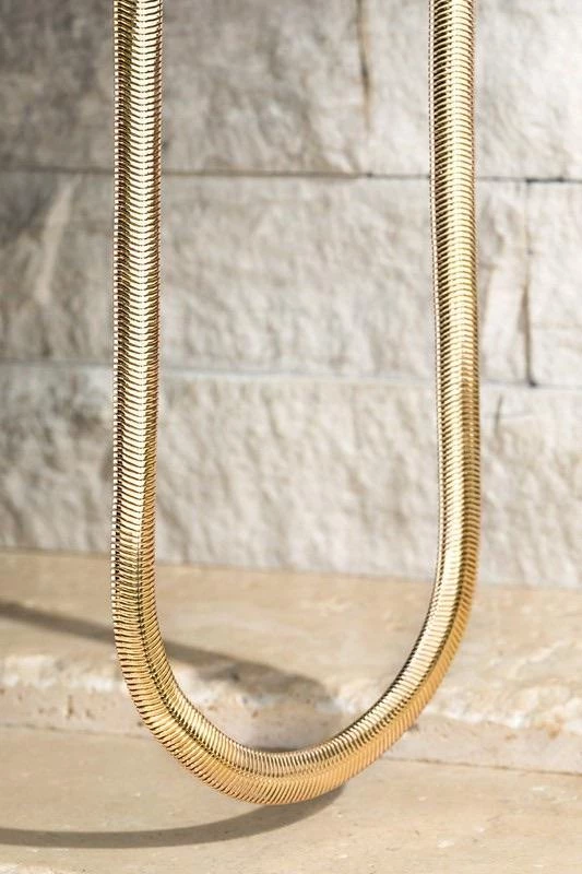 Spice up any outfit with this chain necklace! Easy to layer and pair with other necklaces for a layered look. This necklace is a charming short thick snake chain with a lobster claps closure.