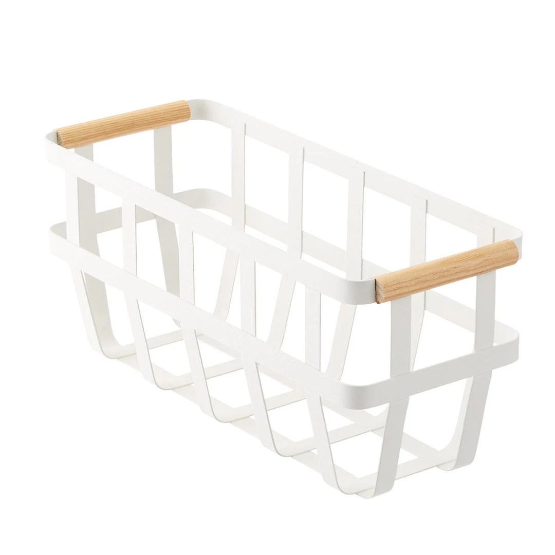 The Slim Tosca Basket with Wooden Handles is a beautiful addition that’s right at home in any kitchen or pantry. It’s flat but textured wire design sits perfectly wherever it’s placed, and holds snacks, fruits, dry goods and pantry staples in style. The wood handles add a touch of sophistication and make it a breeze to pull off a shelf or arrange throughout the pantry.